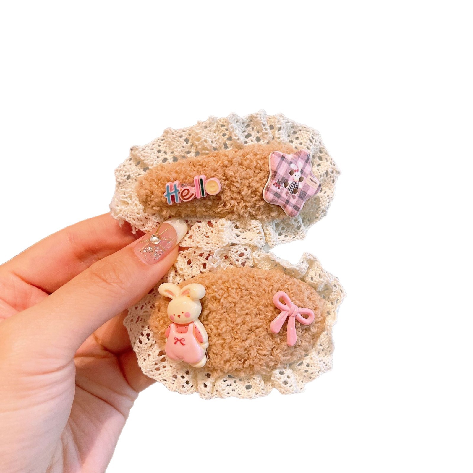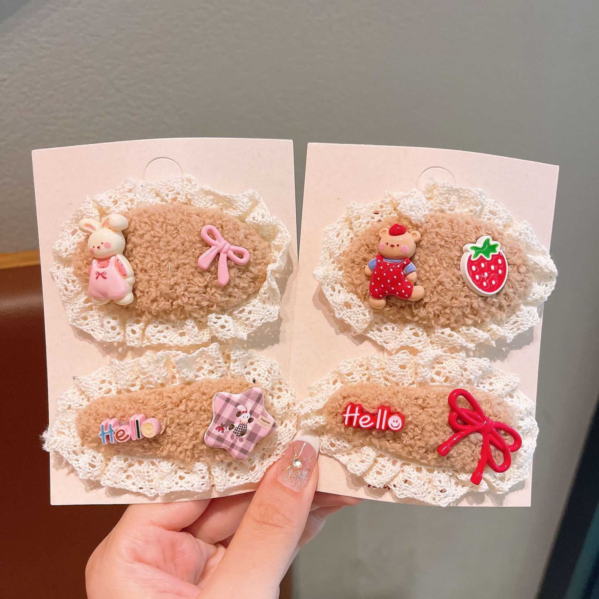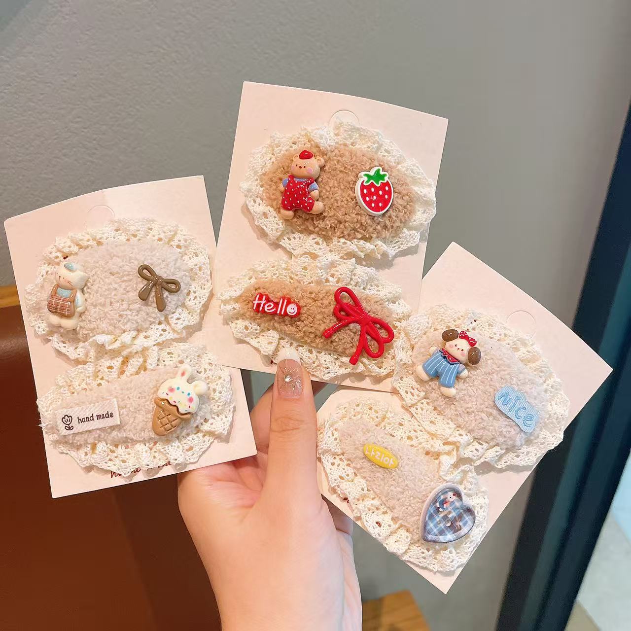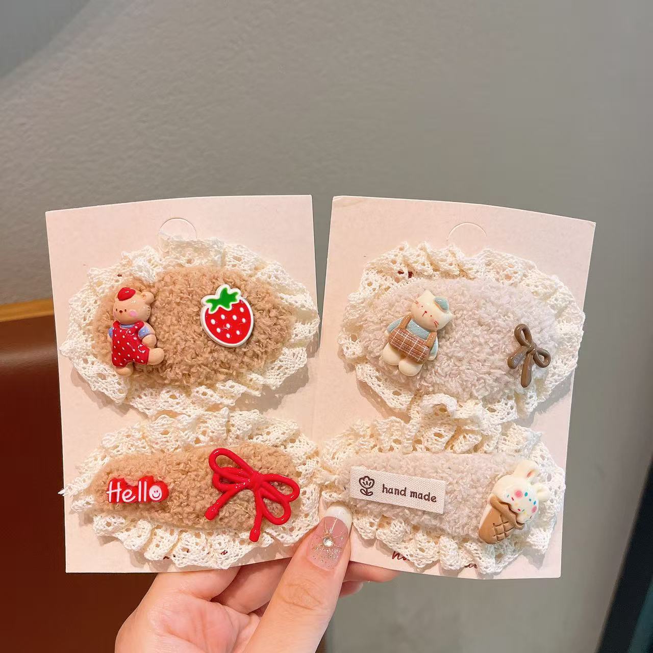 儿童发夹可爱蕾丝毛绒发卡新款女童宝宝刘海夹布艺发饰鸭嘴夹蝴蝶 English | 投诉