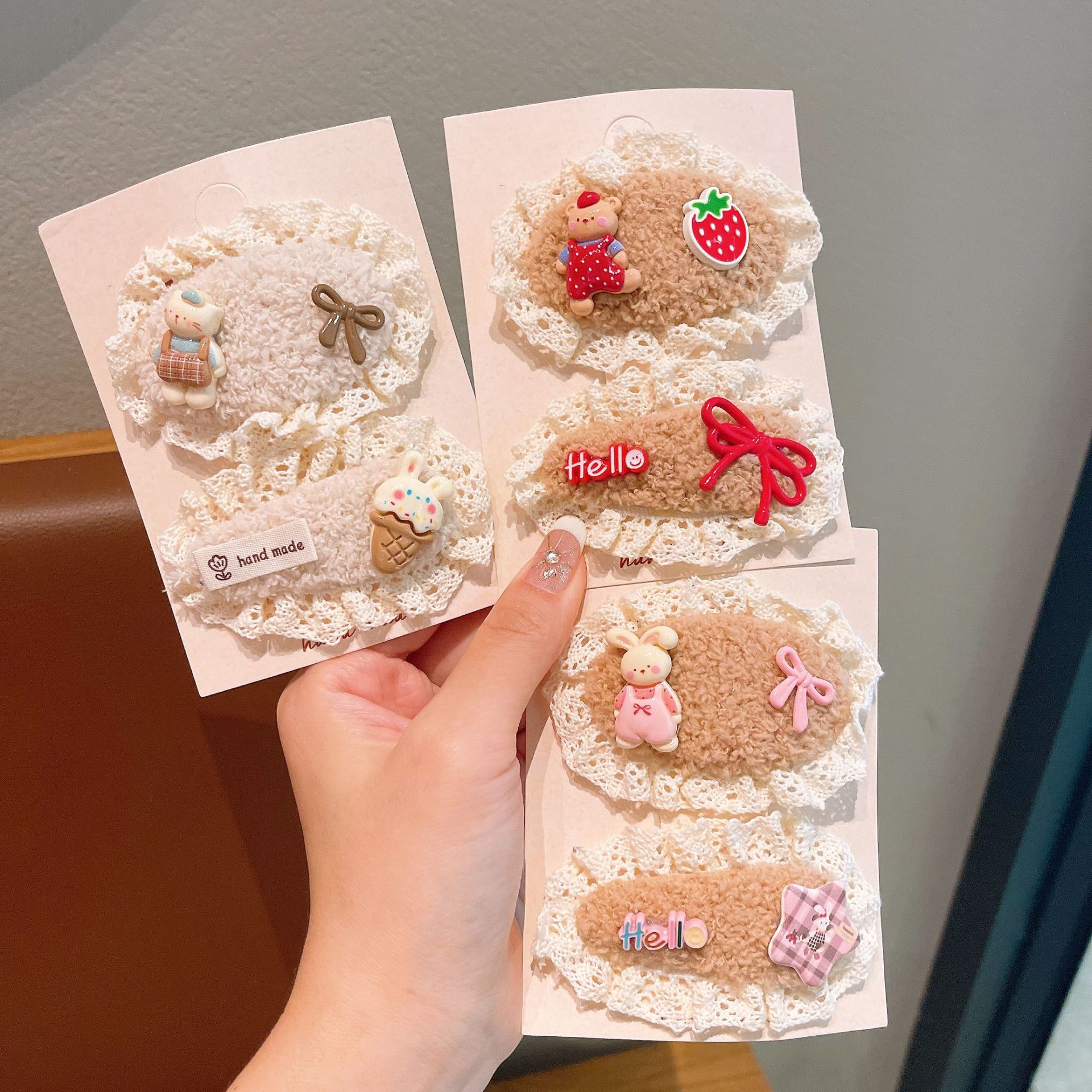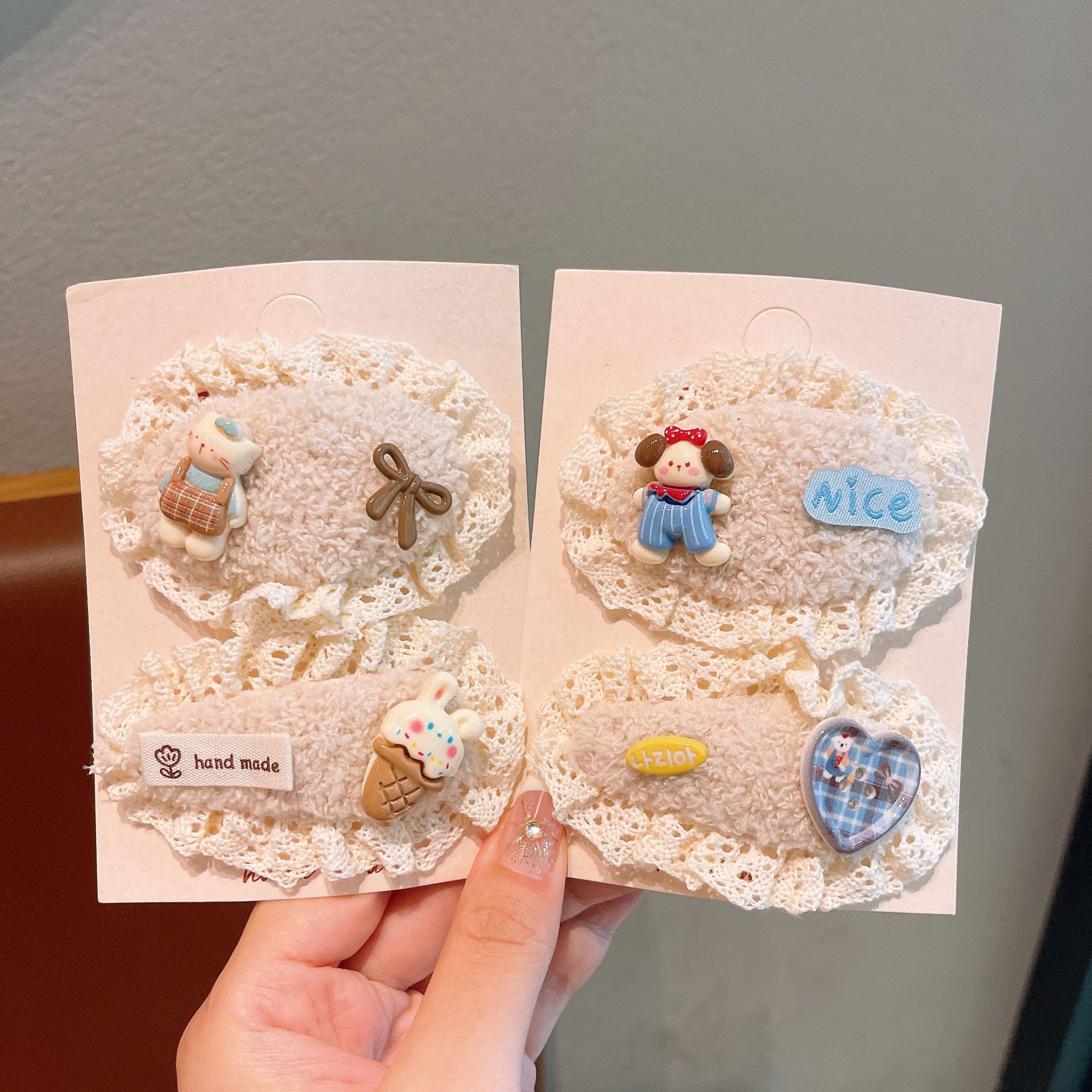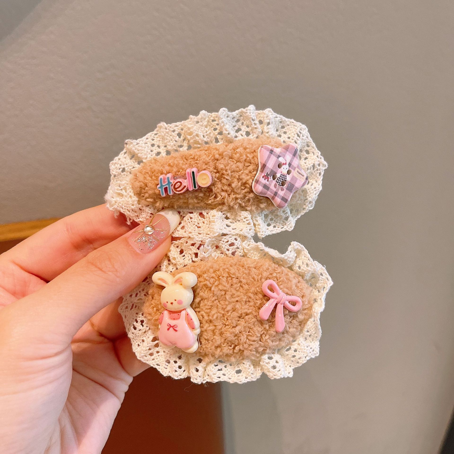 儿童发夹可爱蕾丝毛绒发卡新款女童宝宝刘海夹布艺发饰鸭嘴夹蝴蝶 English | 投诉