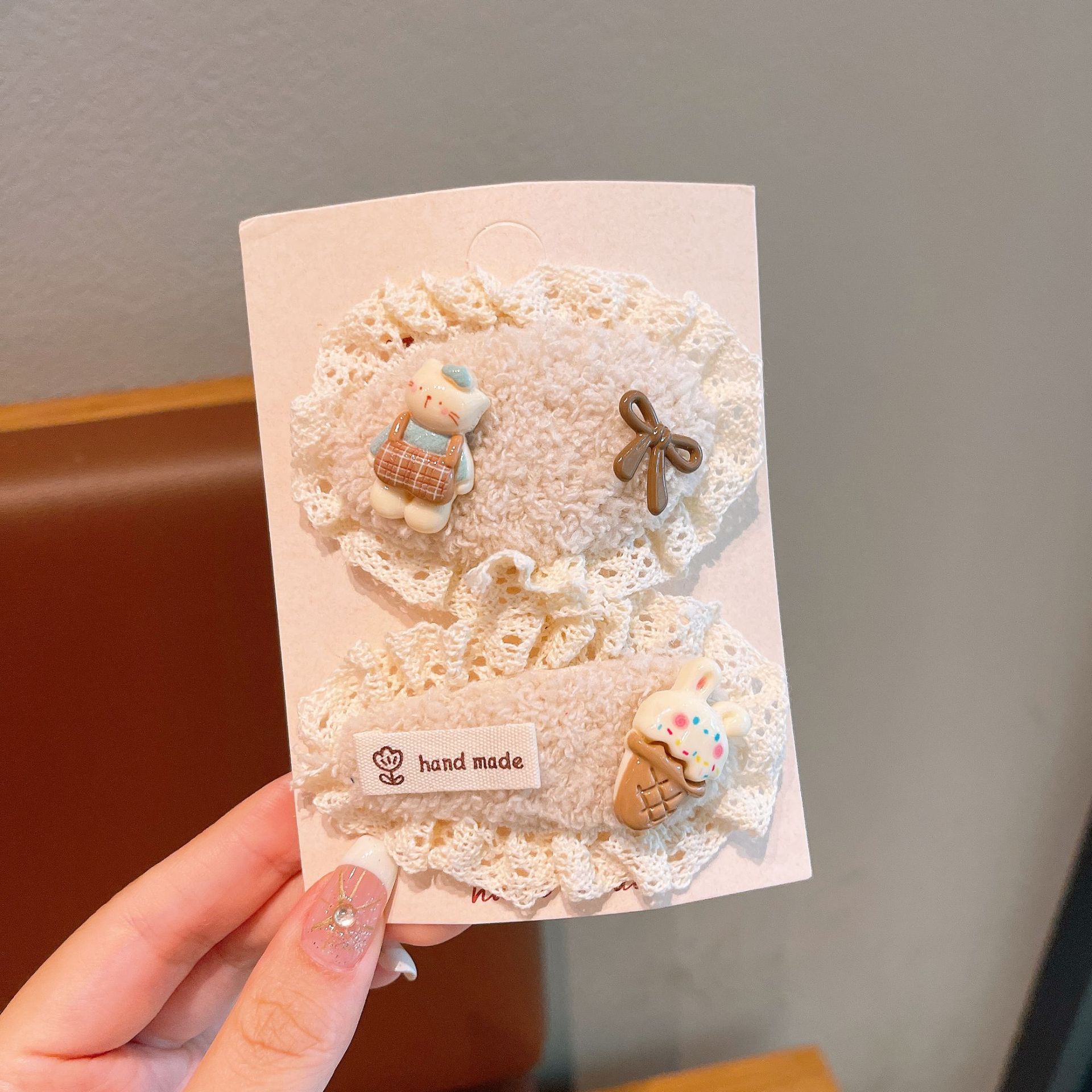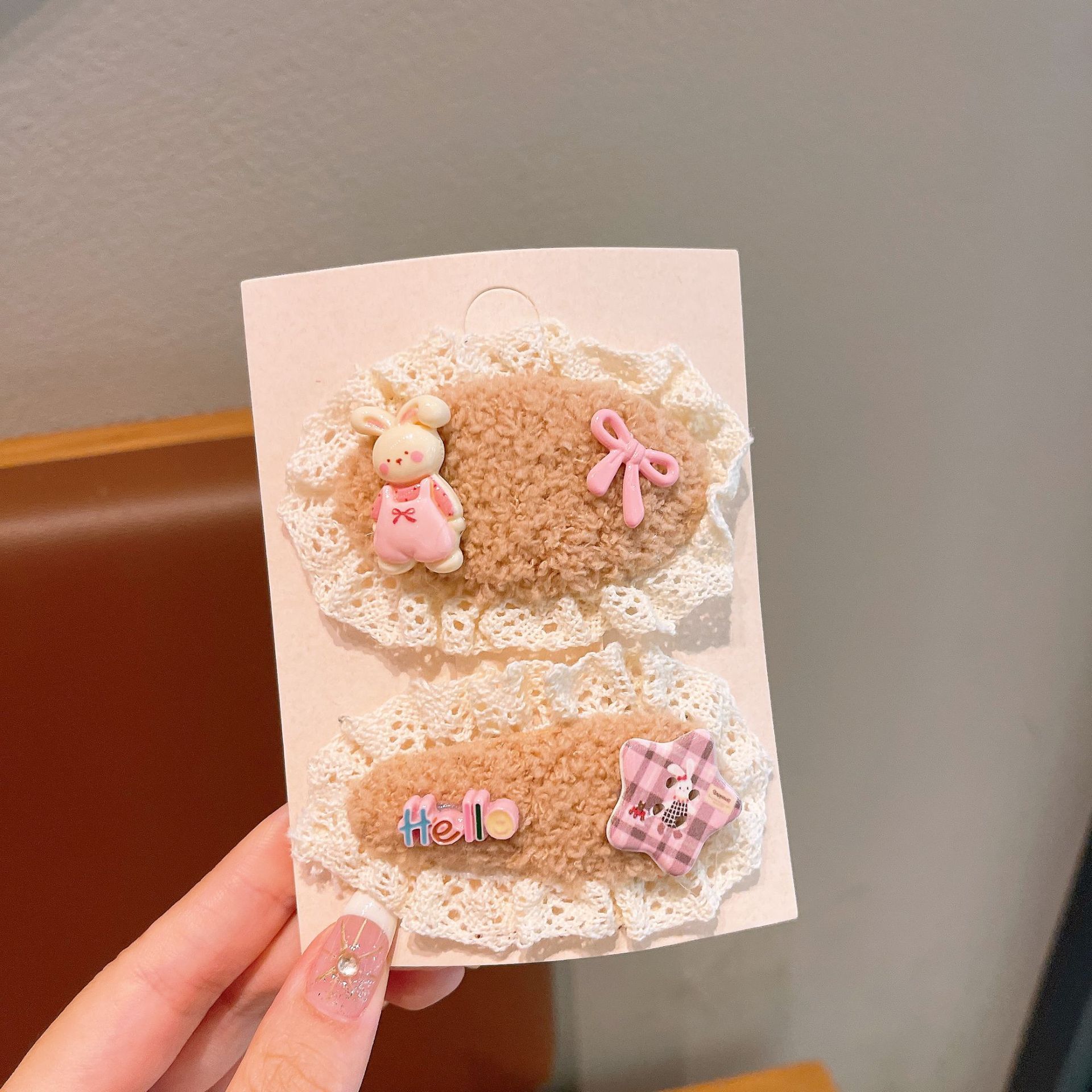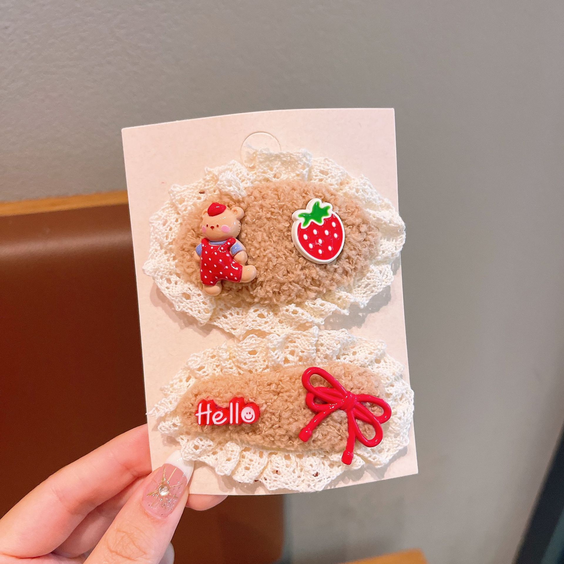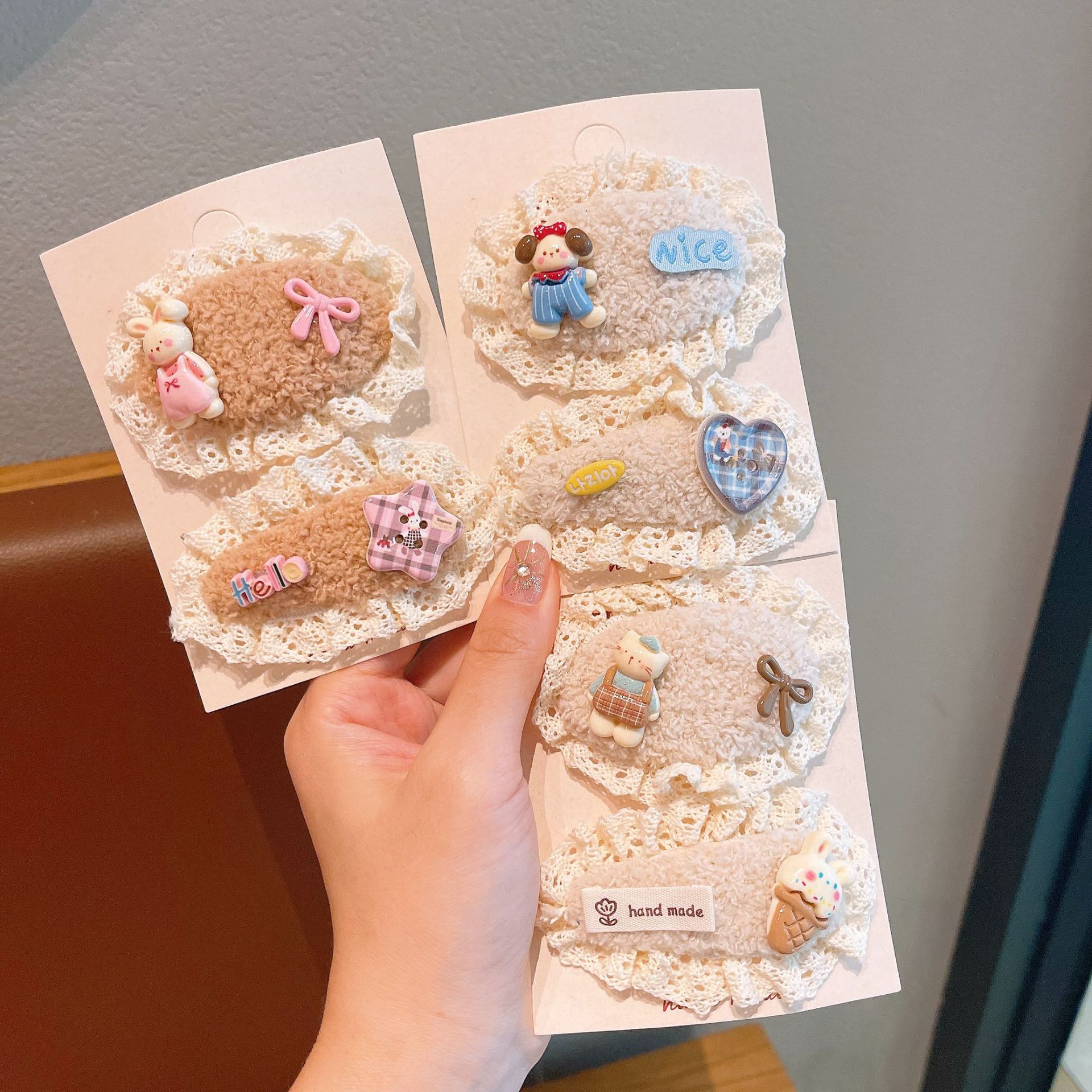 儿童发夹可爱蕾丝毛绒发卡新款女童宝宝刘海夹布艺发饰鸭嘴夹蝴蝶 English | 投诉