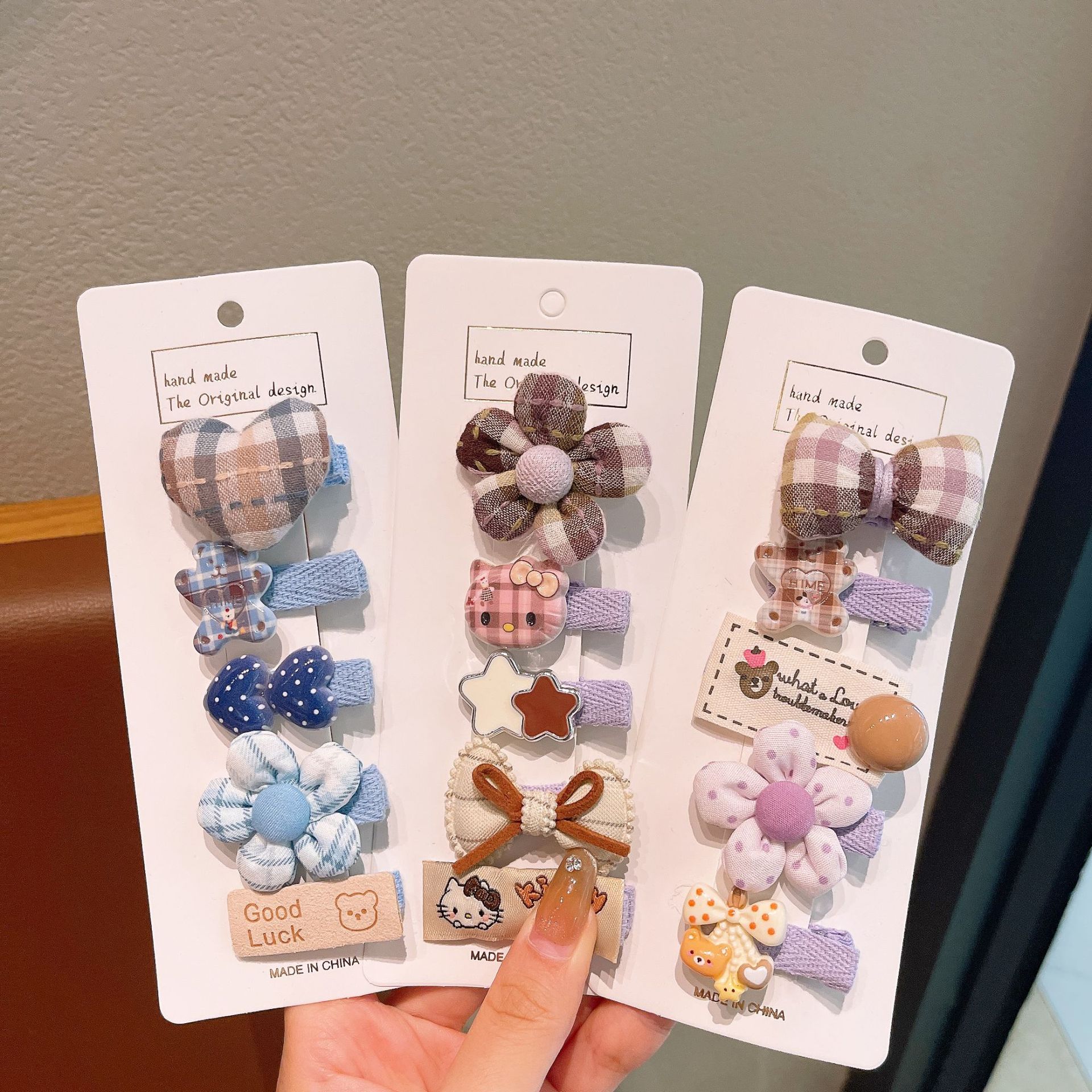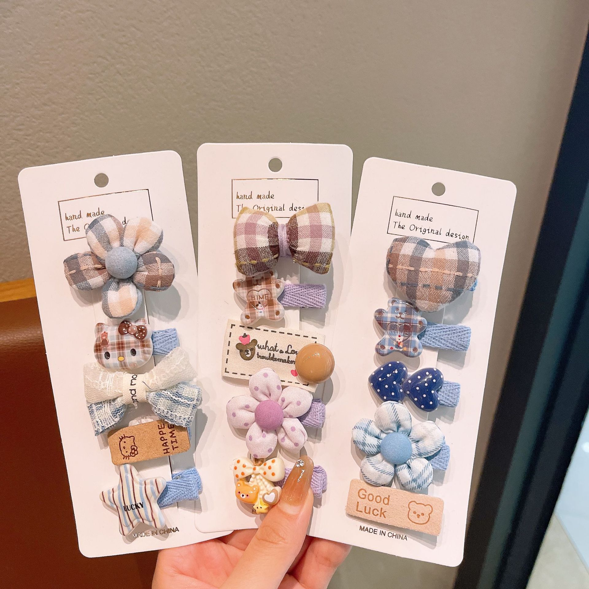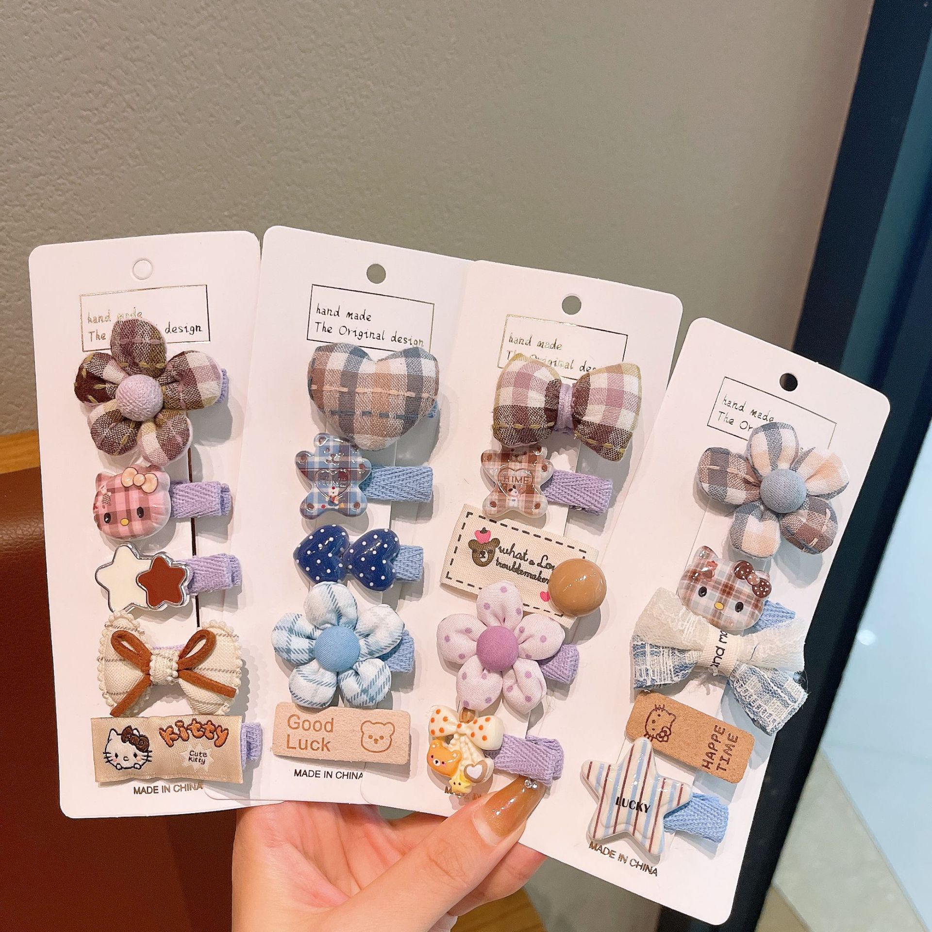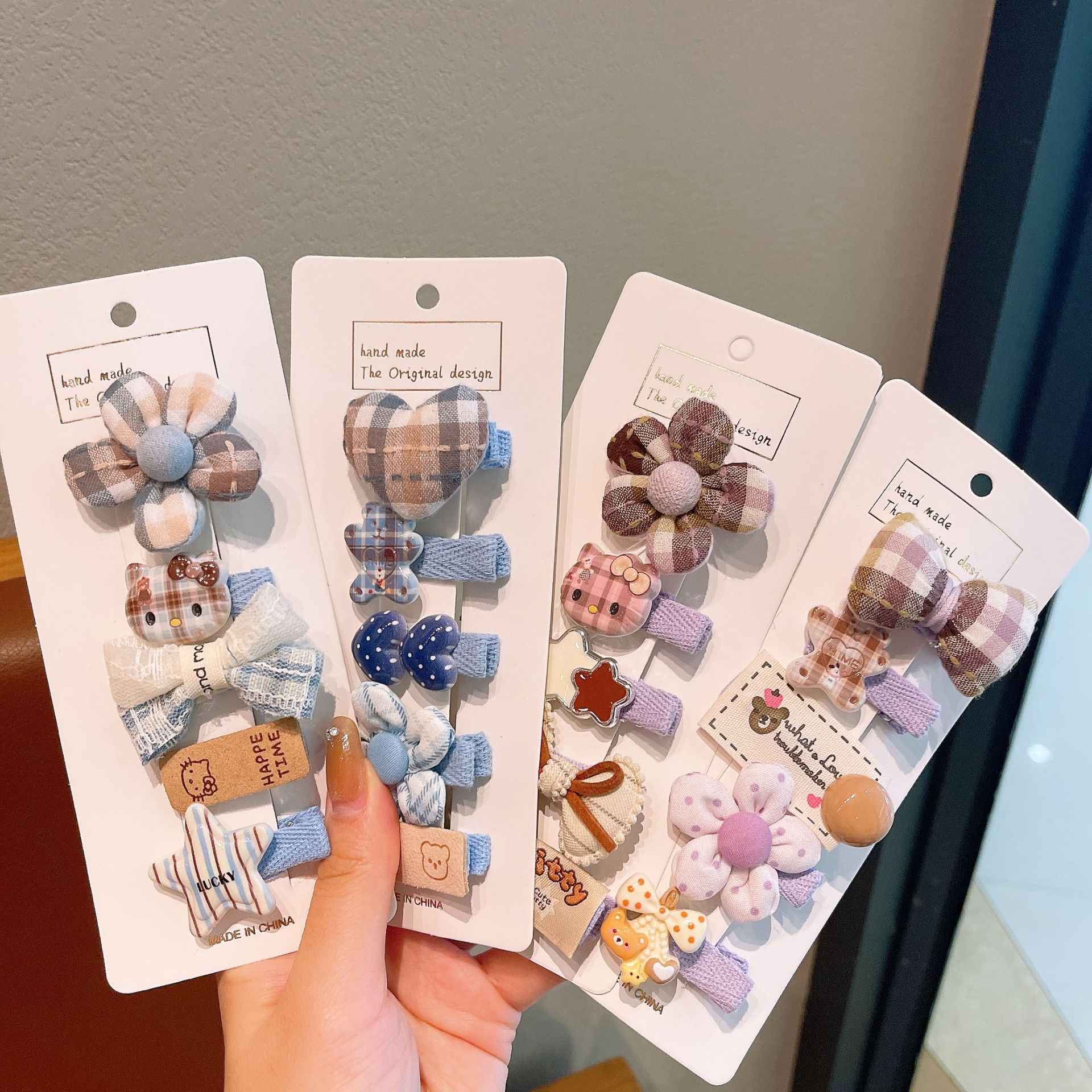 韩版布艺格纹花朵发夹卡通儿童百搭发卡宝宝边夹刘海夹不伤发头饰 English | 投诉
