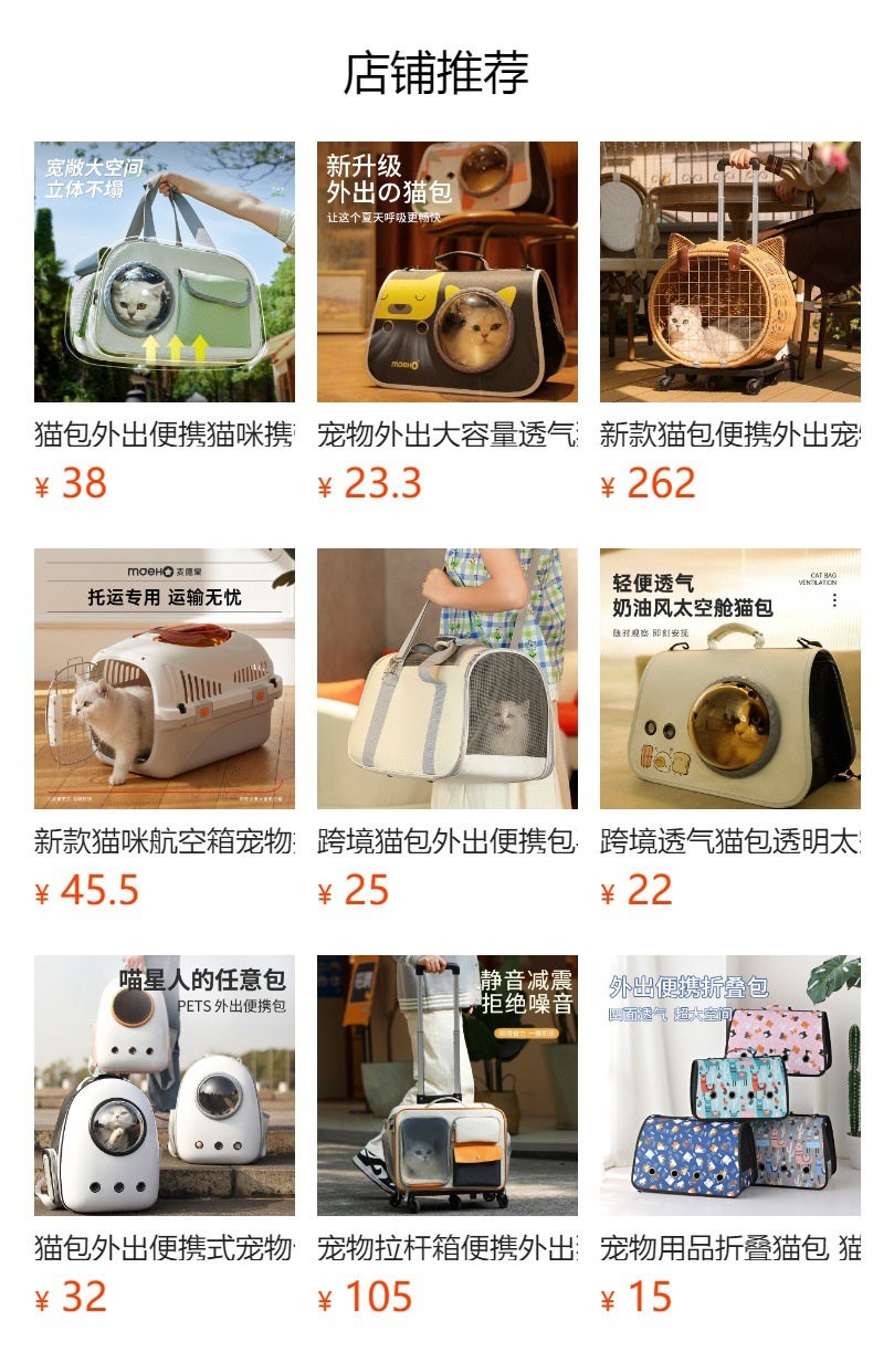 | 韩版透气猫包 | ¥2400 | 189个可售 |