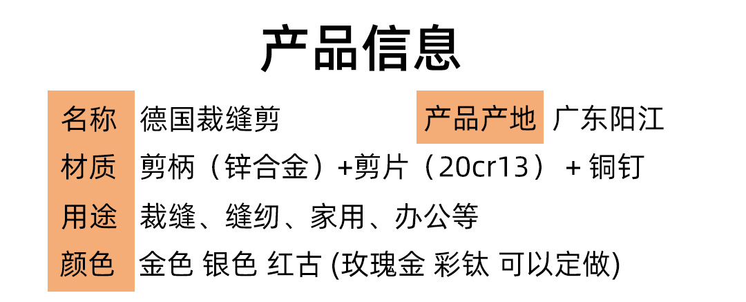 德国裁缝剪不锈钢加厚镀金服装缝纫工艺家用手工锌合金大剪刀 投诉