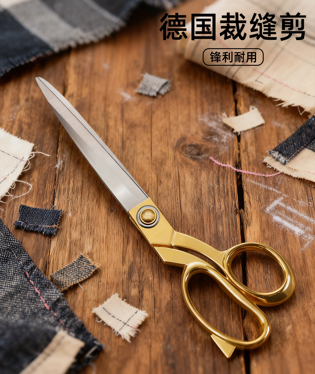 德国裁缝剪不锈钢加厚镀金服装缝纫工艺家用手工锌合金大剪刀