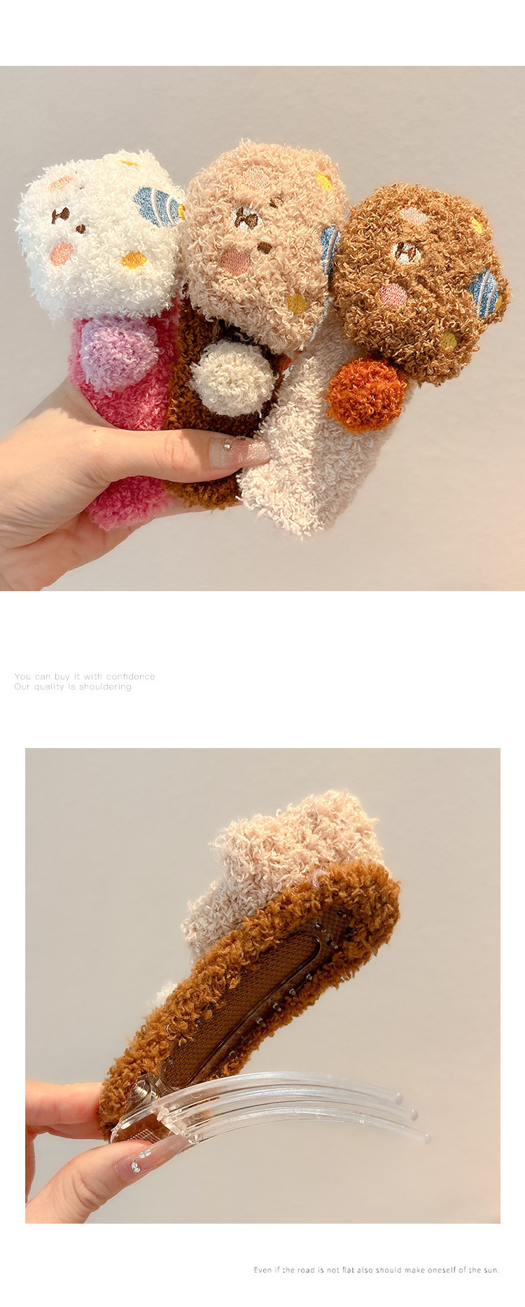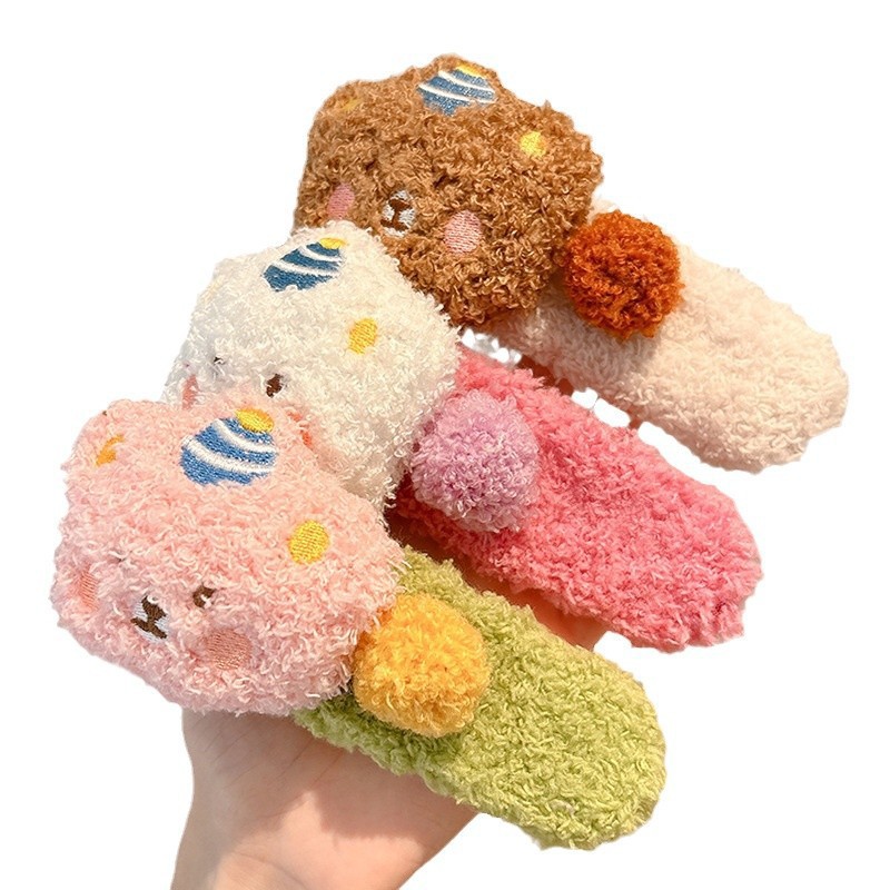 新款卡通毛绒小熊发夹女大号侧边夹子可爱甜美儿童碎发鸭嘴夹发饰 English | 投诉