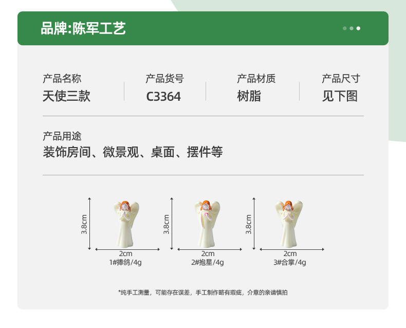 材质: 树脂 类别: 树脂工艺品 风格: 卡通 包装: 普通包装 货号: C3364 是否专利货源: 否 颜色: 1#捧鸽,2#抱星,3#合掌 尺寸: 天使 是否属于礼品: 否