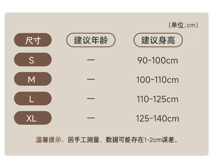 | XL(125-140cm) | ¥0 | 1887条可售 |