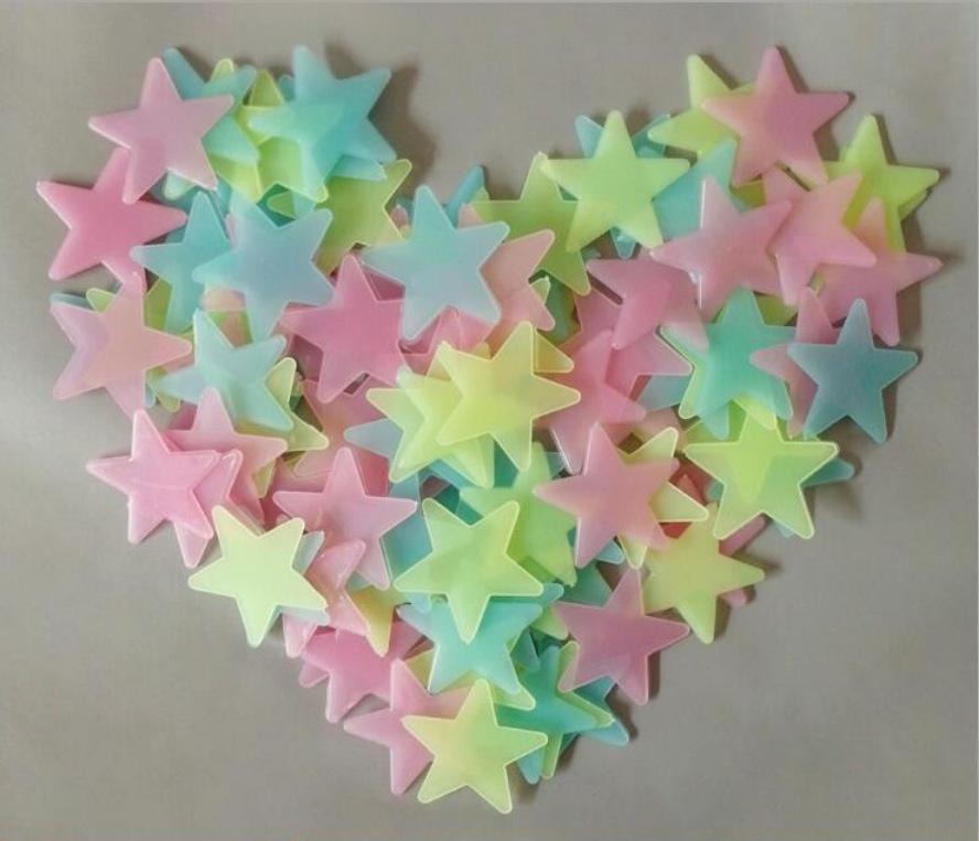 品名:星星夜光贴尺寸:3cm 颜色:黄色,红色,蓝色,彩色包装:3cm星星一包100个