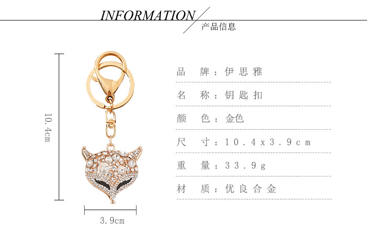 可爱镶水钻狐狸头汽车钥匙扣时尚包包挂件动物钥匙链小礼品批发 English | 投诉