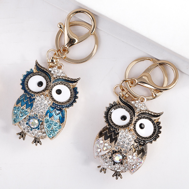 伊思雅新款创意动物系列大眼猫头鹰合金镶钻钥匙扣跨境挂饰批发