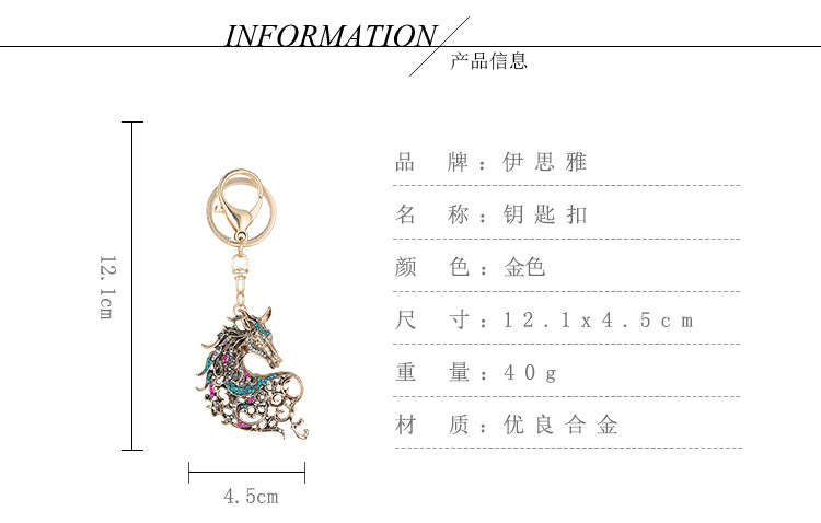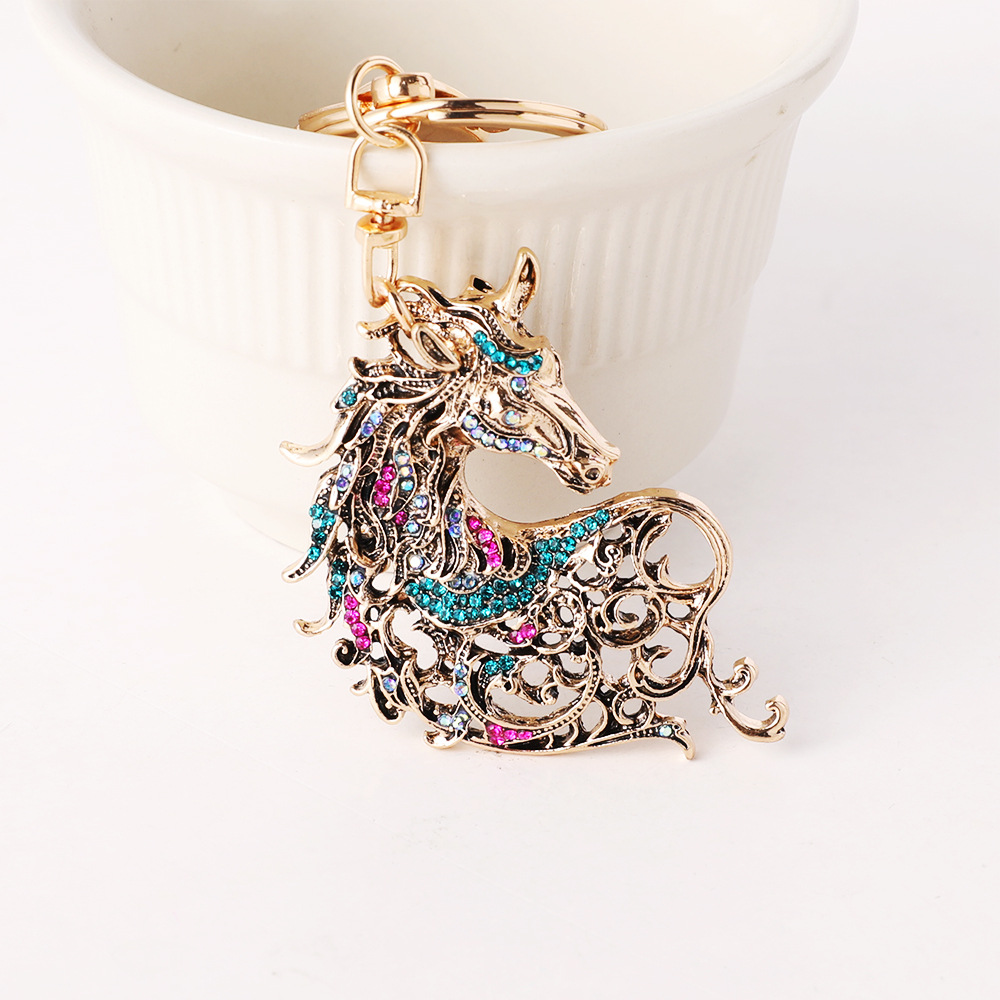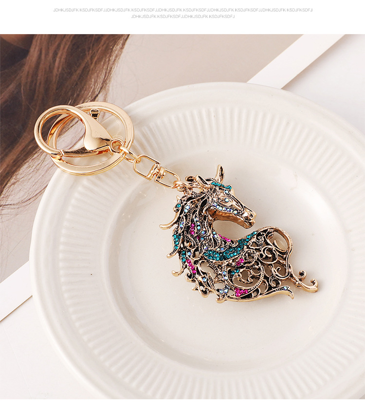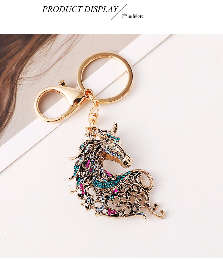 新款镶钻生肖马精美动物汽车钥匙扣包包挂饰金属创意小礼品批发 English | 投诉