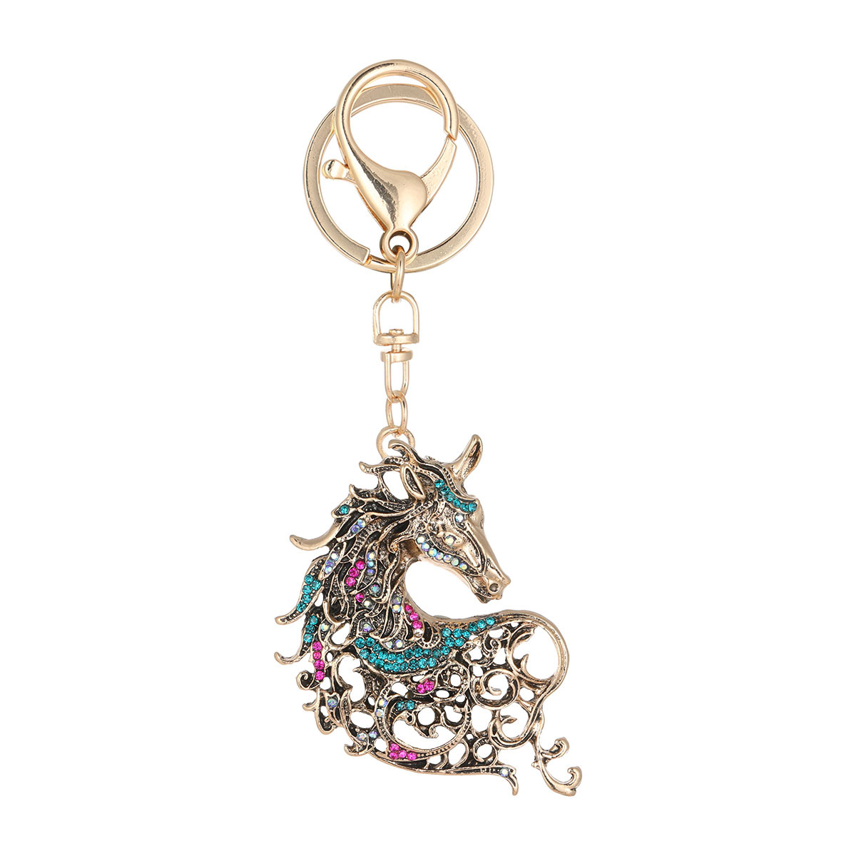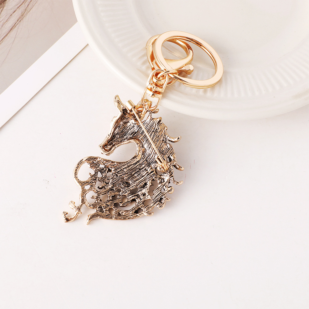 新款镶钻生肖马精美动物汽车钥匙扣包包挂饰金属创意小礼品批发