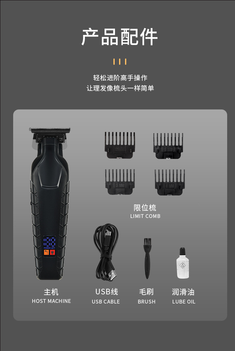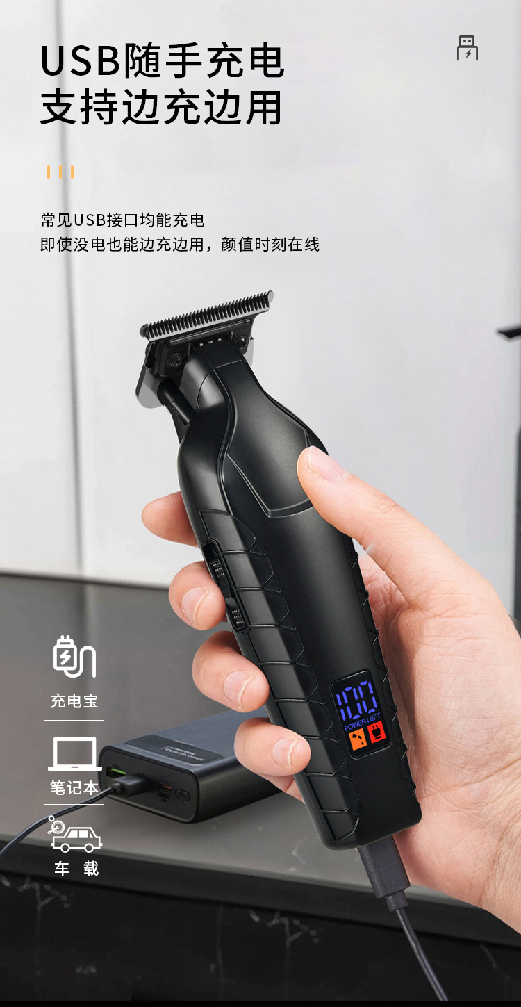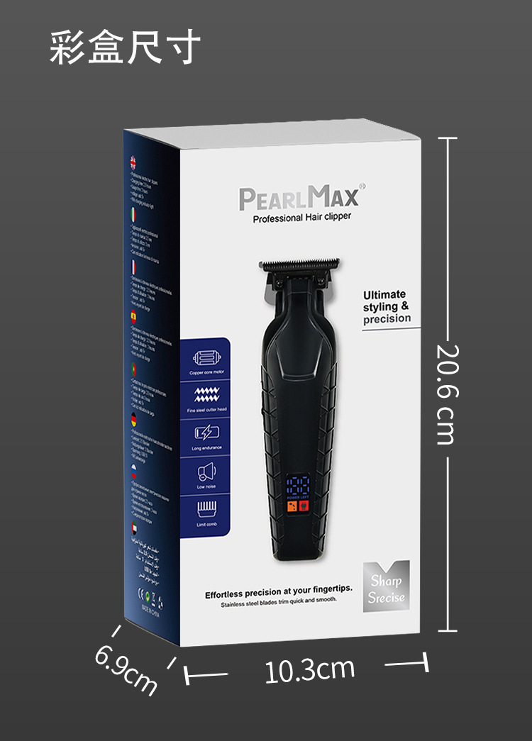 Pearl Max油头雕刻电推剪,发廊专用理发推子,LED数显光头神器理发器。核心卖点:精准雕刻油头,LED数显实时监控电量与速度,高效理发不卡发。
