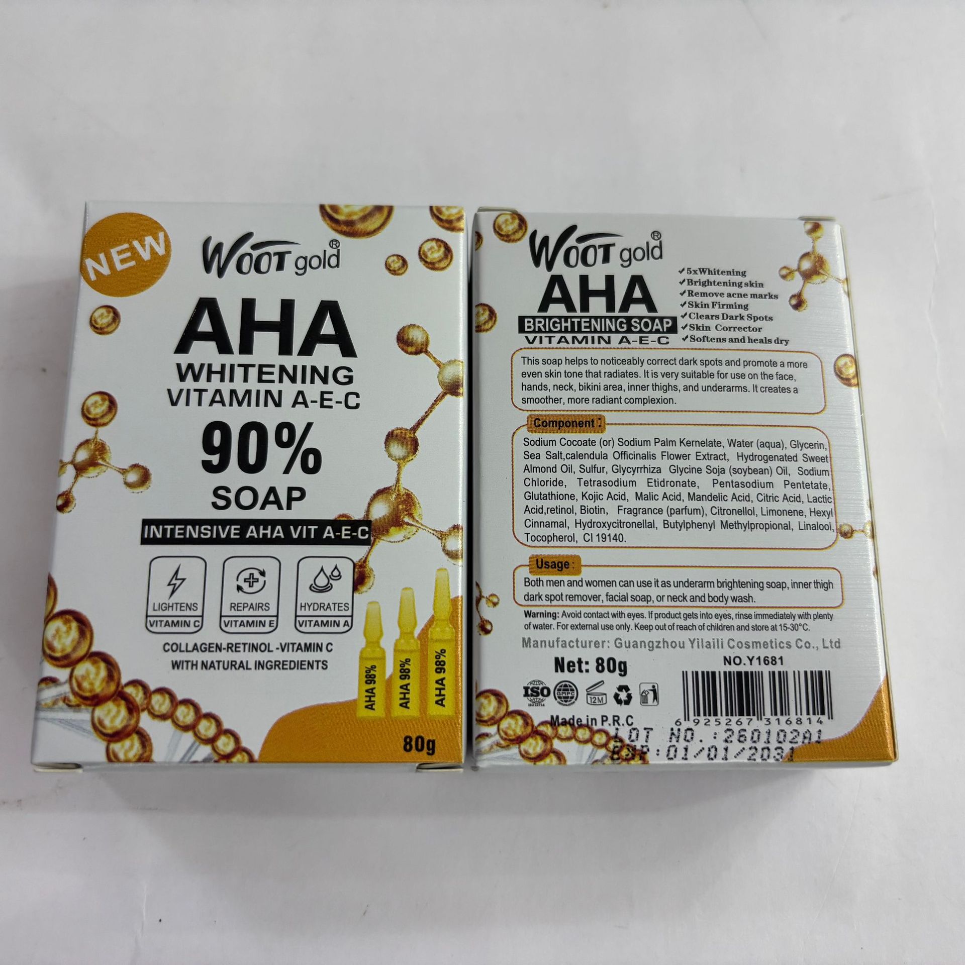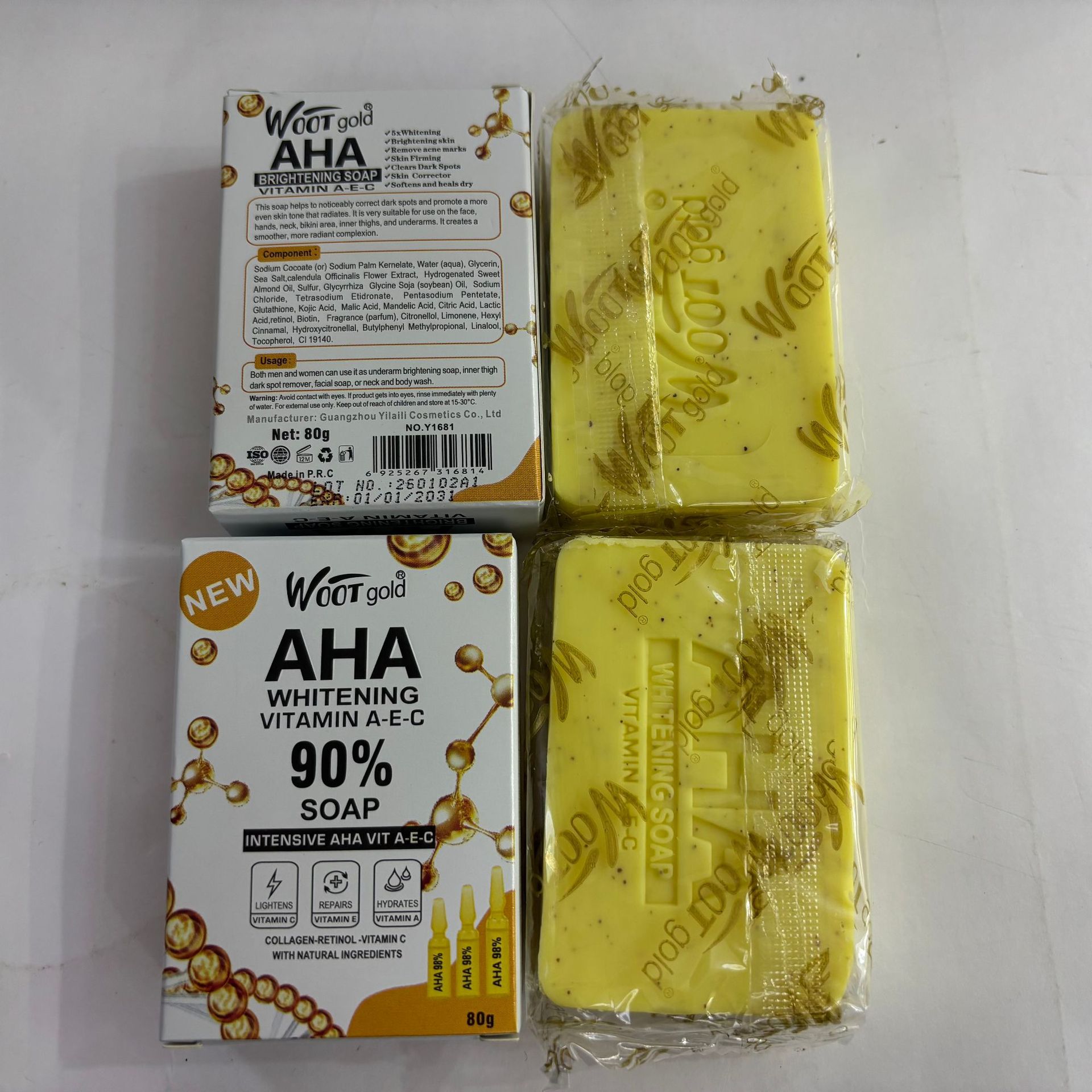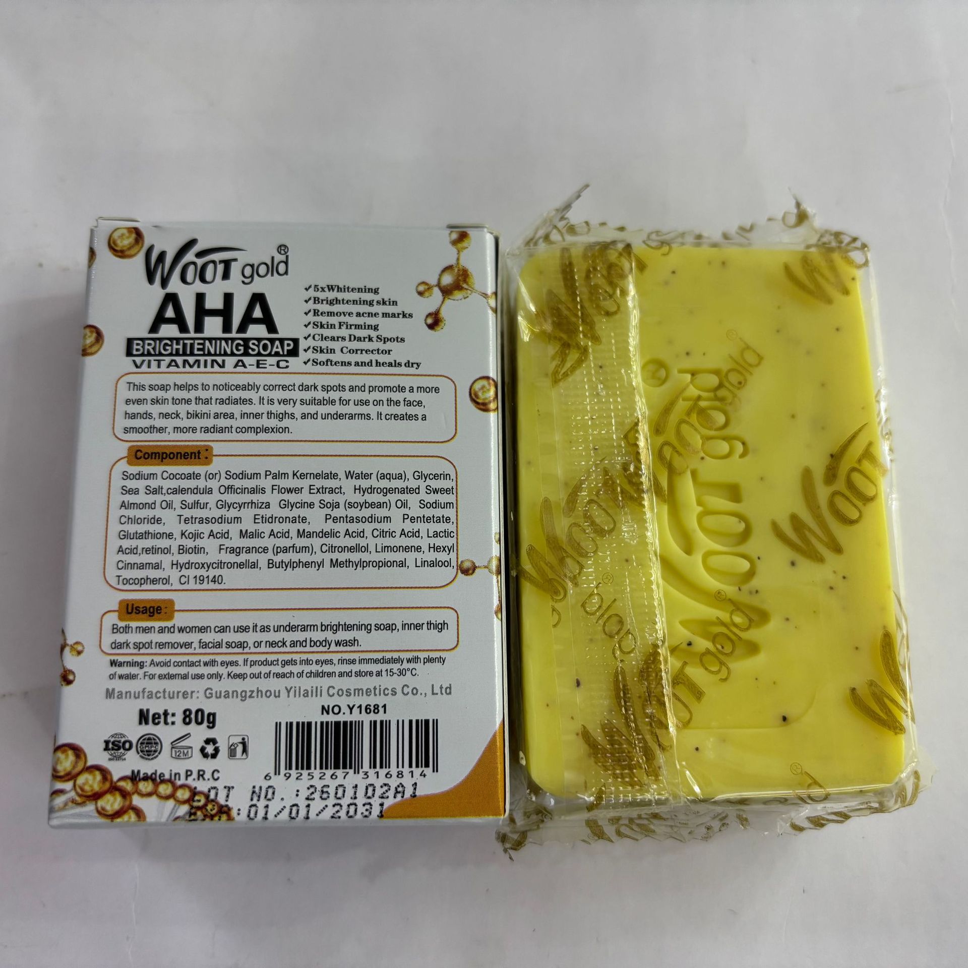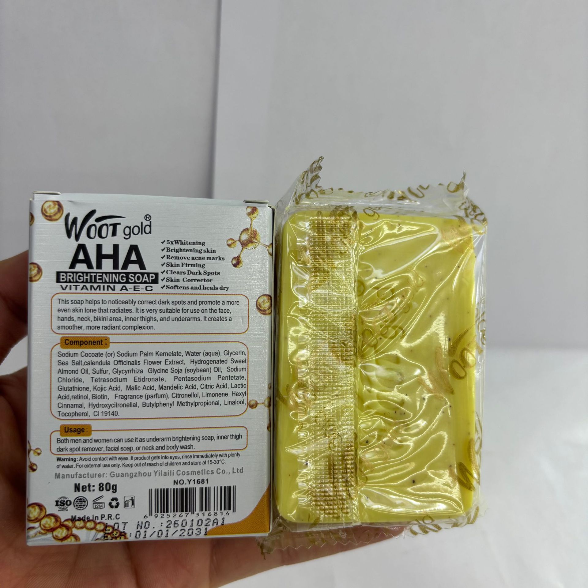 品牌: WOOT gold 适用肤质: 通用 香皂类型: 普通香皂 功效: 去角质,清爽控油 香型: 水果香 原料成分: 蜂蜡 规格类型: 正常规格 保质期: 三年 是否进口: 否 品牌类型: 国产品牌 商品条形码: 6975004489158 货号: WOOT gold 肥皂80g 适用人群: 成人 颜色分类: 维生素A-E-C 主要下游平台: ebay,亚马逊,wish,速卖通,独立 主要销售地区: 非洲,欧洲,南美,东南亚,北美,东北亚, 有可授权的自有品牌: 是 是否跨境出口专供货源: 是 净含量: 80g 装箱数量: 600个/箱