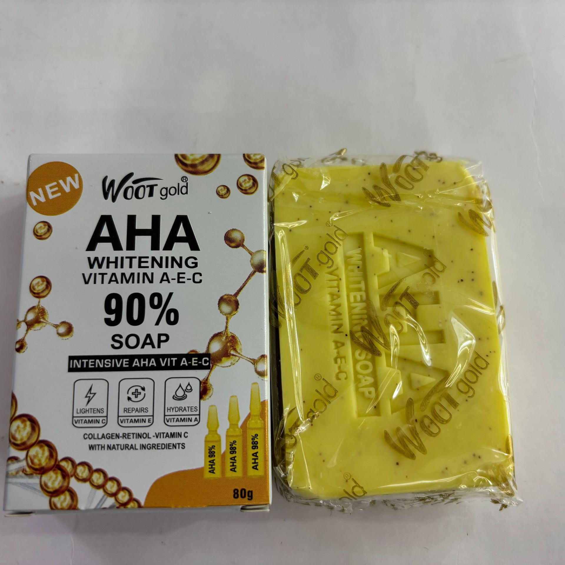 跨境全英文富含维生素A&E&C香皂80G提亮肤色改善暗黄洁面手工肥皂 English | 投诉