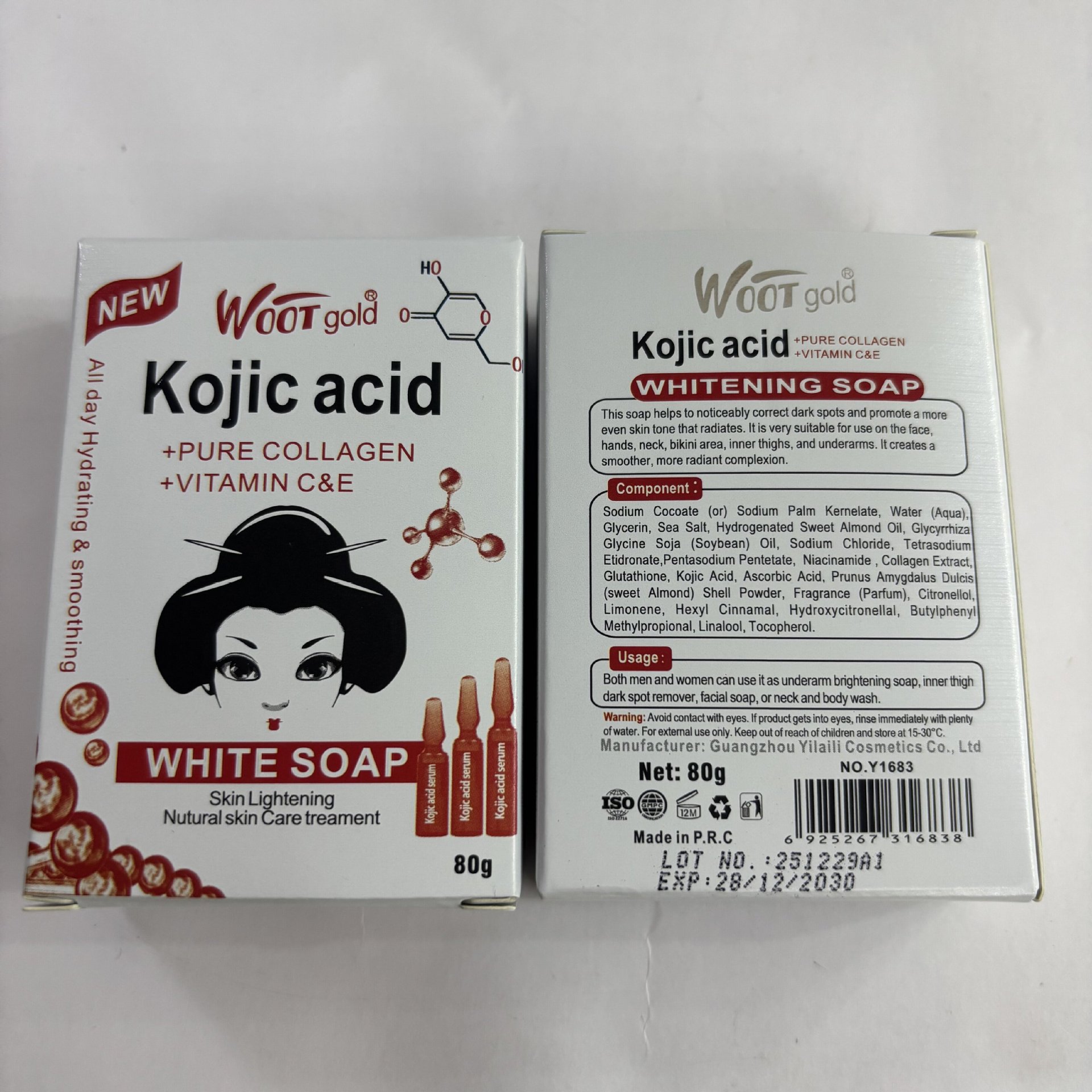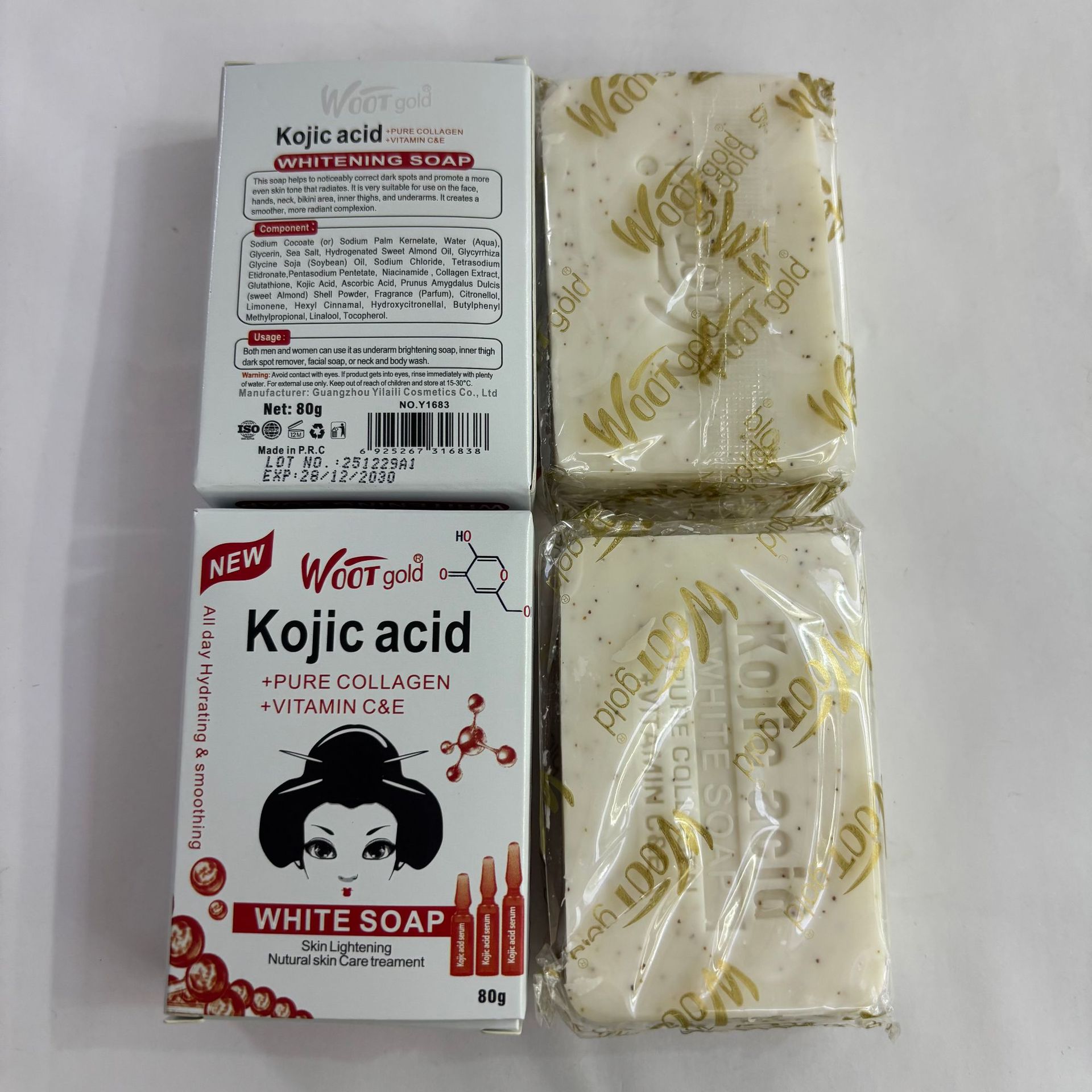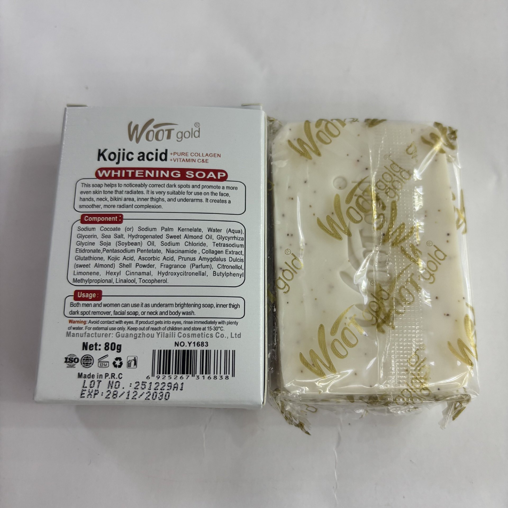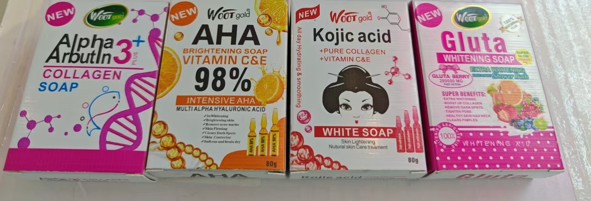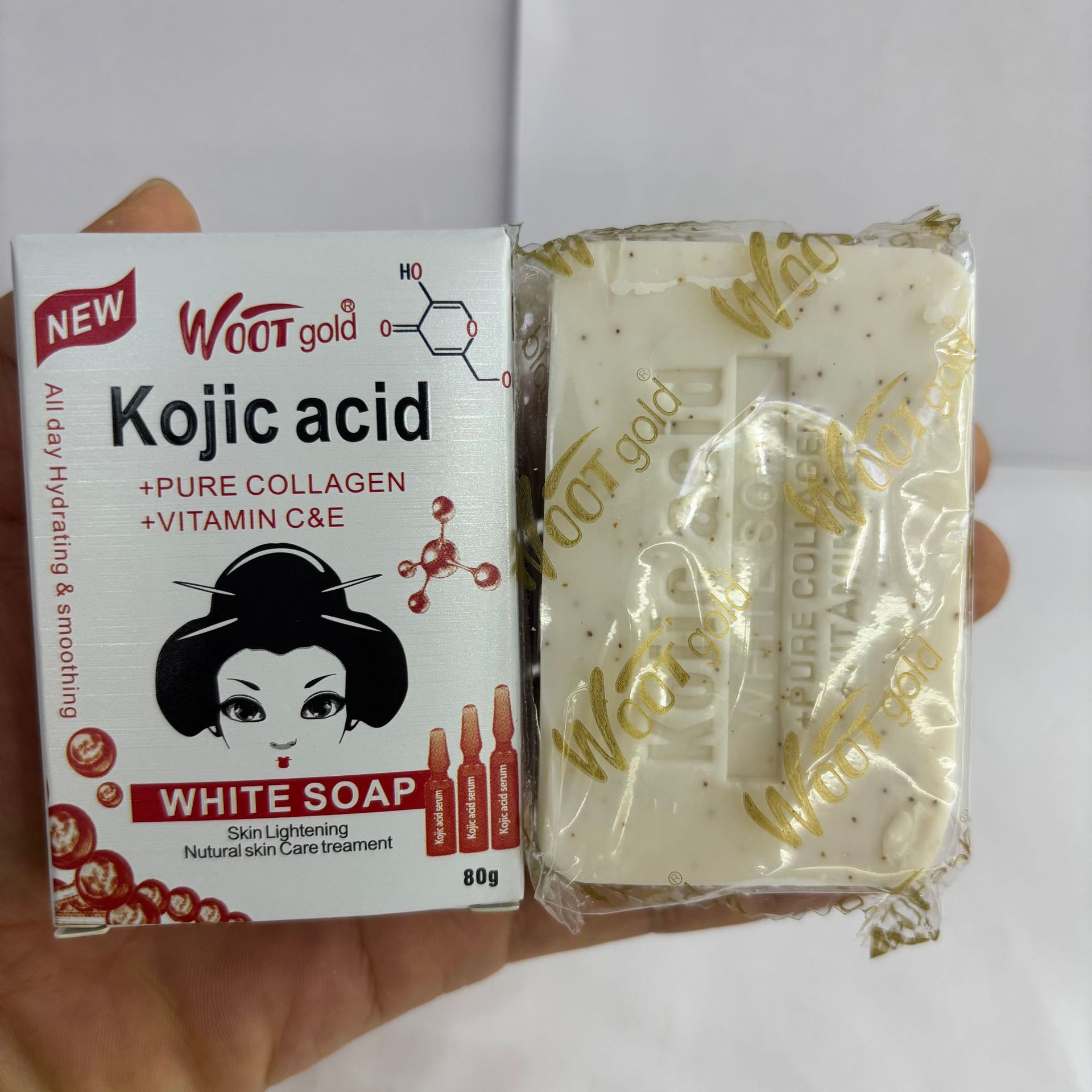 品牌: WOOT gold 适用肤质: 通用 香皂类型: 普通香皂 功效: 去角质,清爽控油 香型: 水果香 原料成分: 其它 规格类型: 正常规格 保质期: 三年 是否进口: 否 品牌类型: 国产品牌 商品条形码: 6975004489158 货号: WOOT gold 肥皂80g 适用人群: 成人 上市时间: 2005年 颜色分类: 曲酸 主要下游平台: ebay,亚马逊,wish,速卖通,独立 主要销售地区: 非洲,欧洲,南美,东南亚,北美,东北亚, 有可授权的自有品牌: 是 是否跨境出口专供货源: 是 净含量: 80g