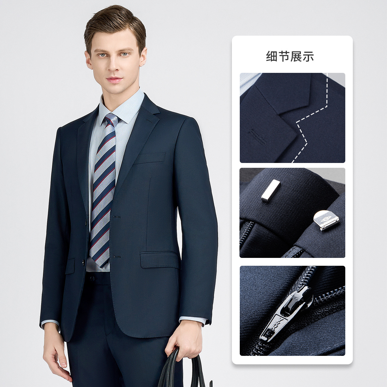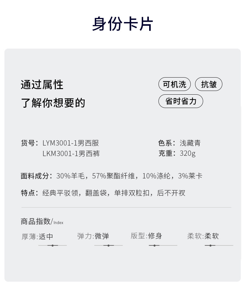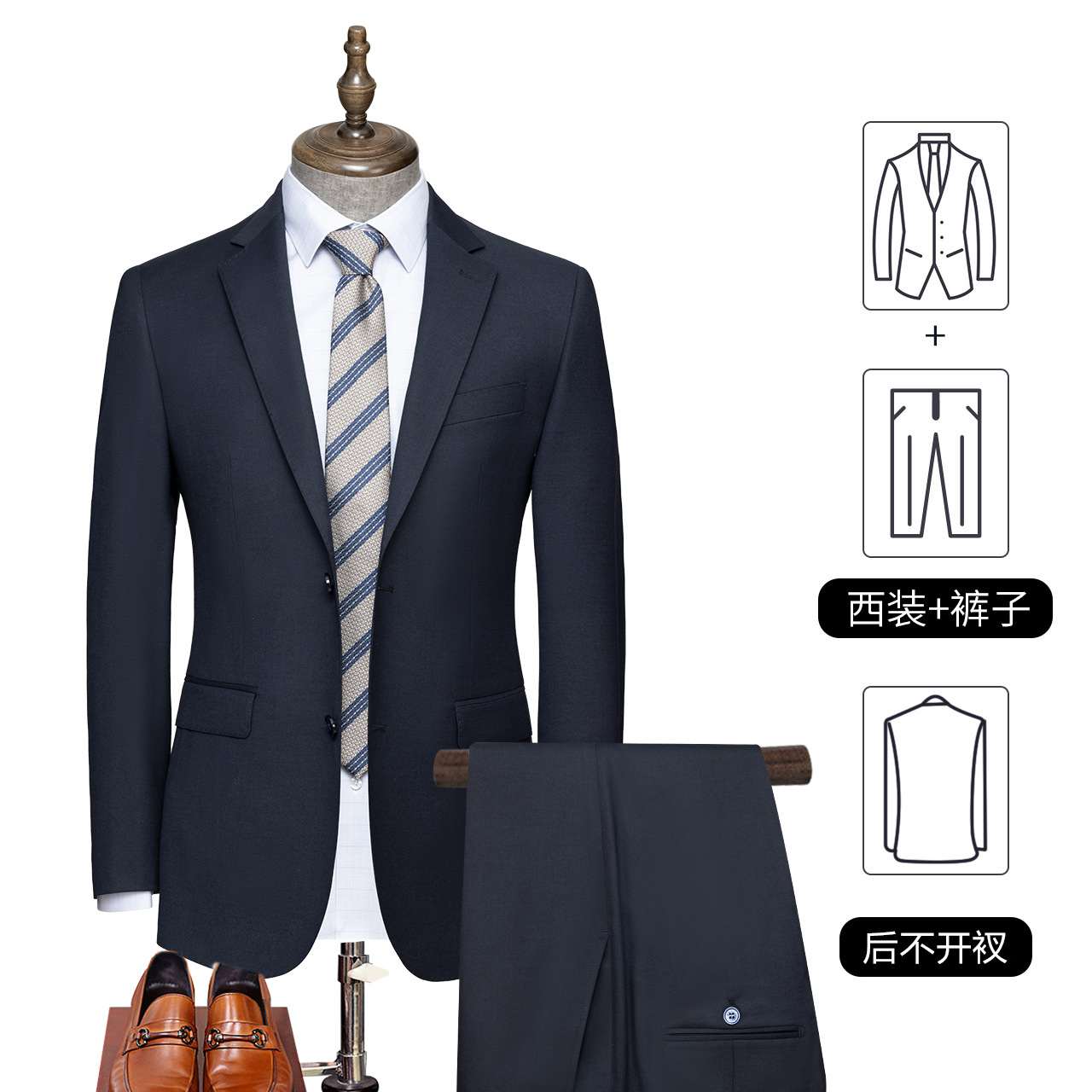 产品只含西服和西裤,衬衫、领带等搭配和配饰需单独购买!