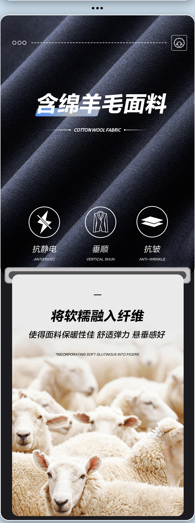因身高和需求不一样,西裤出厂默认是未撬边,如需撬边请提前咨询客服,撬边裁剪后不退不换!