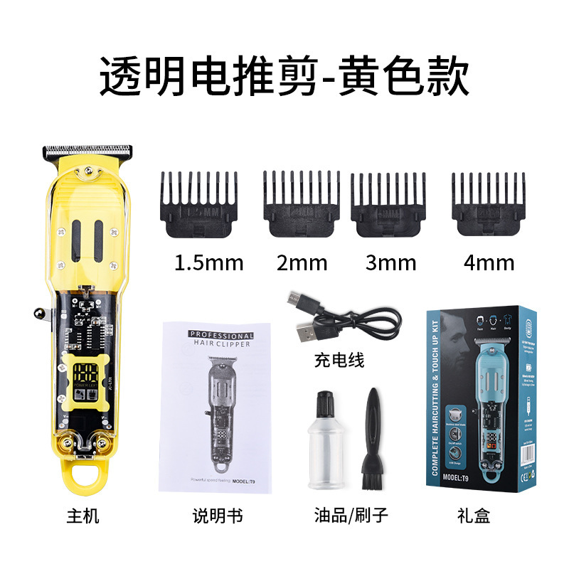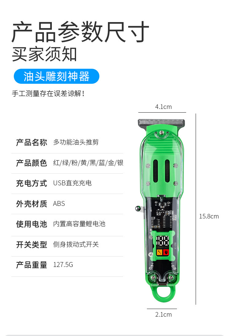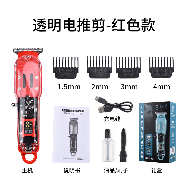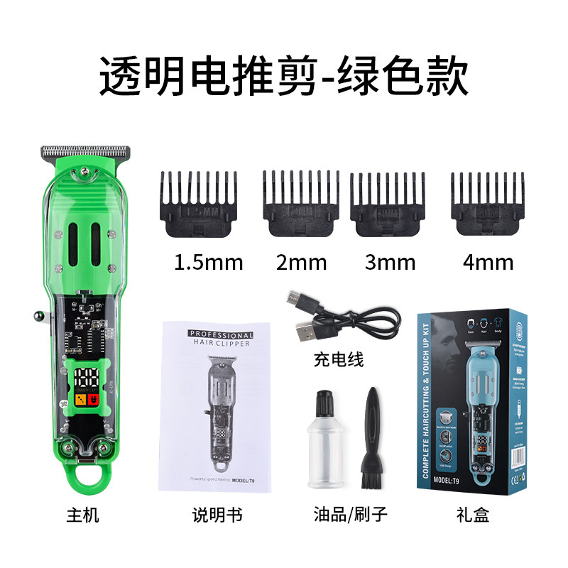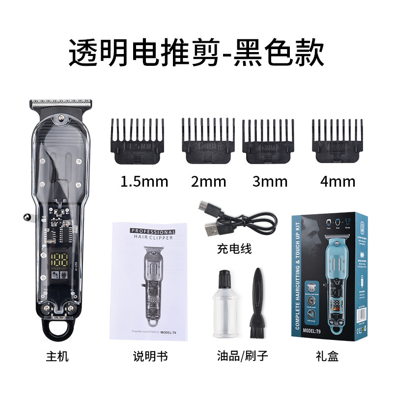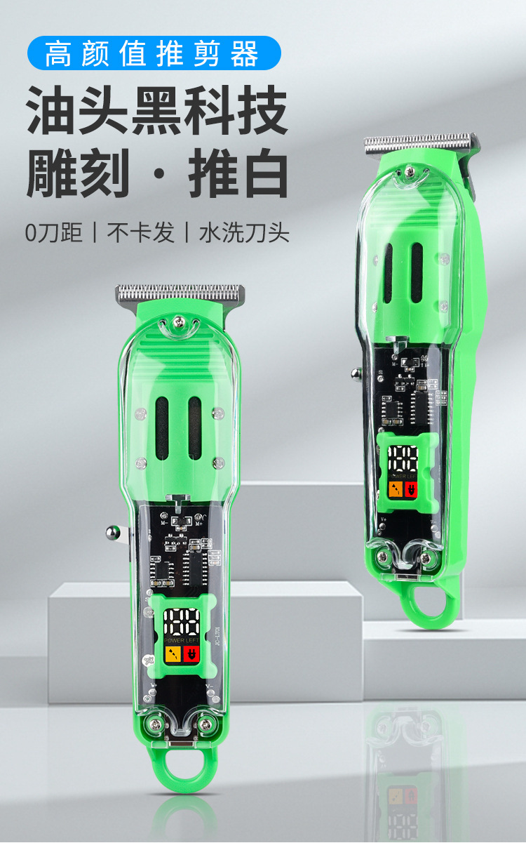 透明理发器Pearl Max电推子,LED液晶数显精准控制,USB充电便捷。核心卖点:油头雕刻推剪,锐利刀头不卡发。