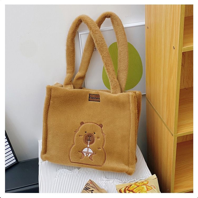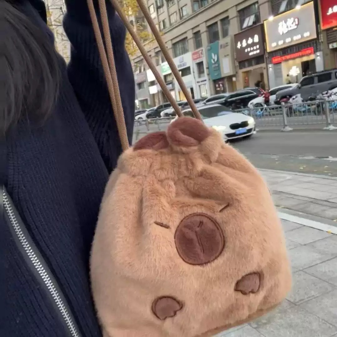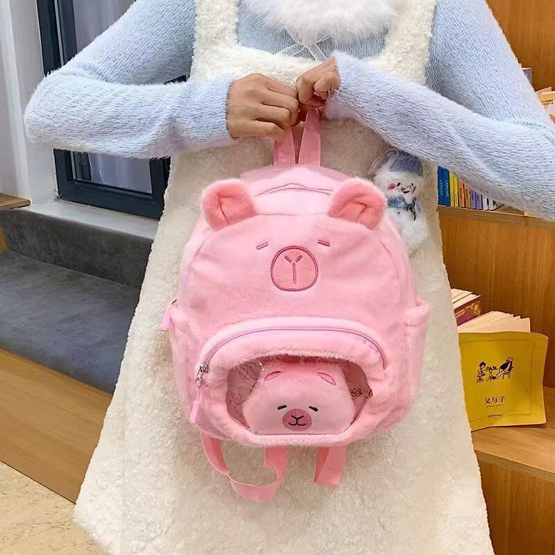 卡通网红同款卡皮巴拉书包女双肩背包儿童水豚公仔毛绒玩具手提包 English | 投诉
