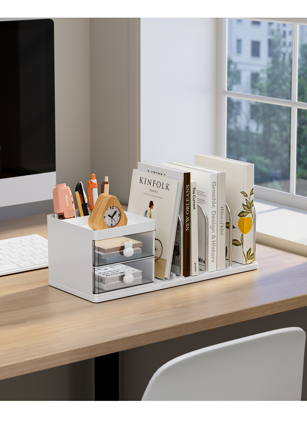 桌面办公室用品收纳书立架学生文具书架简约置物架塑钢书立收纳盒 English | 投诉
