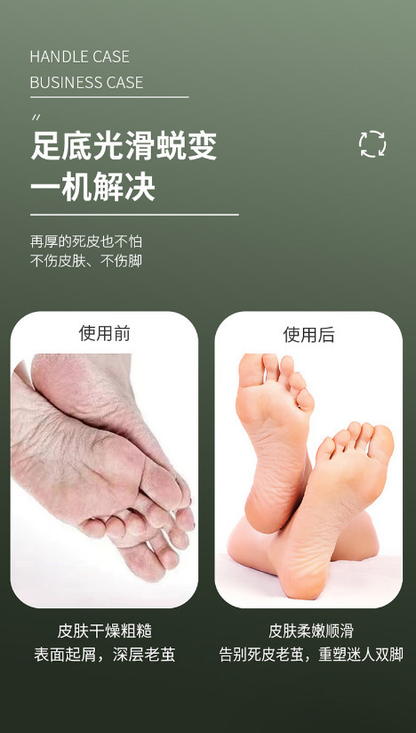 核心卖点:智能磨头,温和不伤肤,解决足部粗糙痛点。