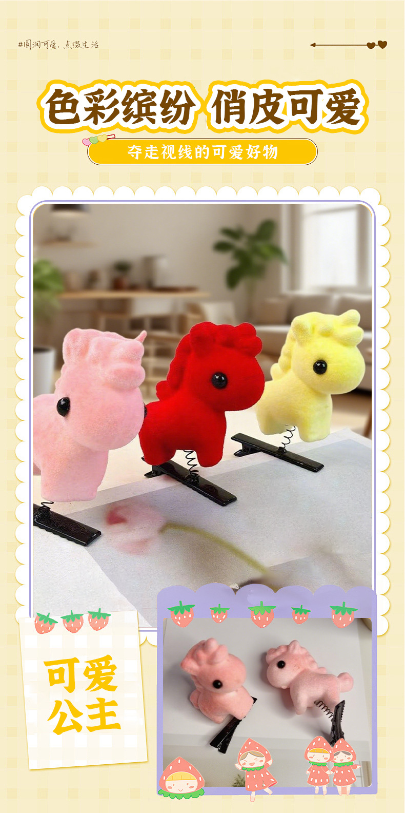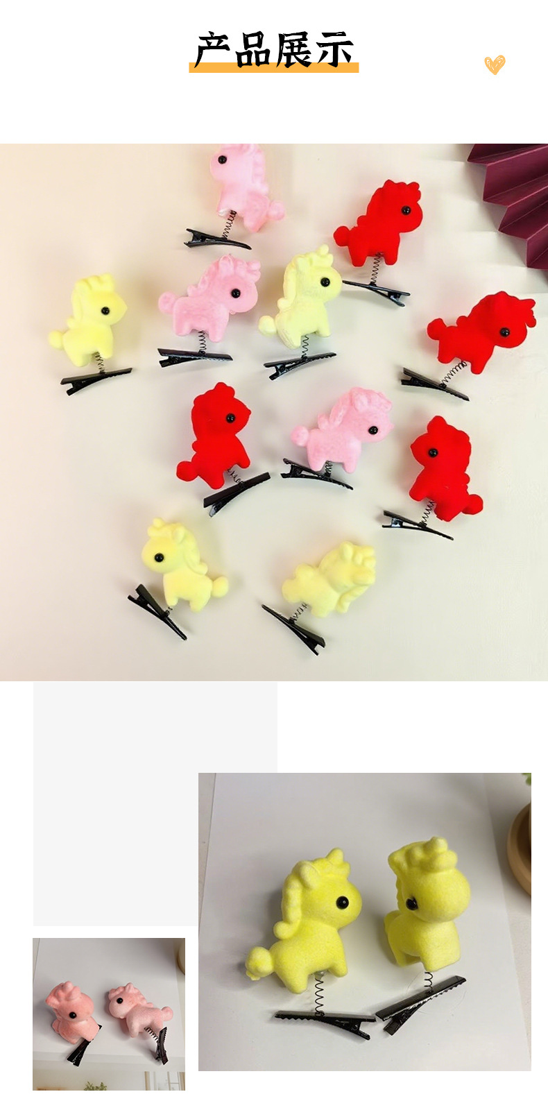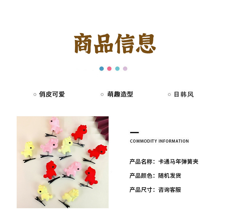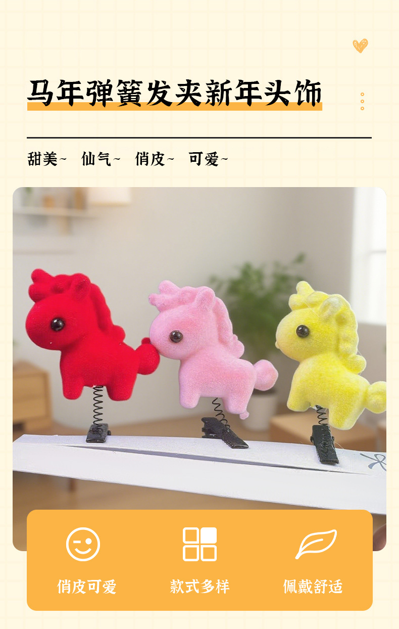 可爱新年小马弹簧发夹发箍头饰儿童超萌马年装饰发卡边夹鸭嘴夹 English | 投诉