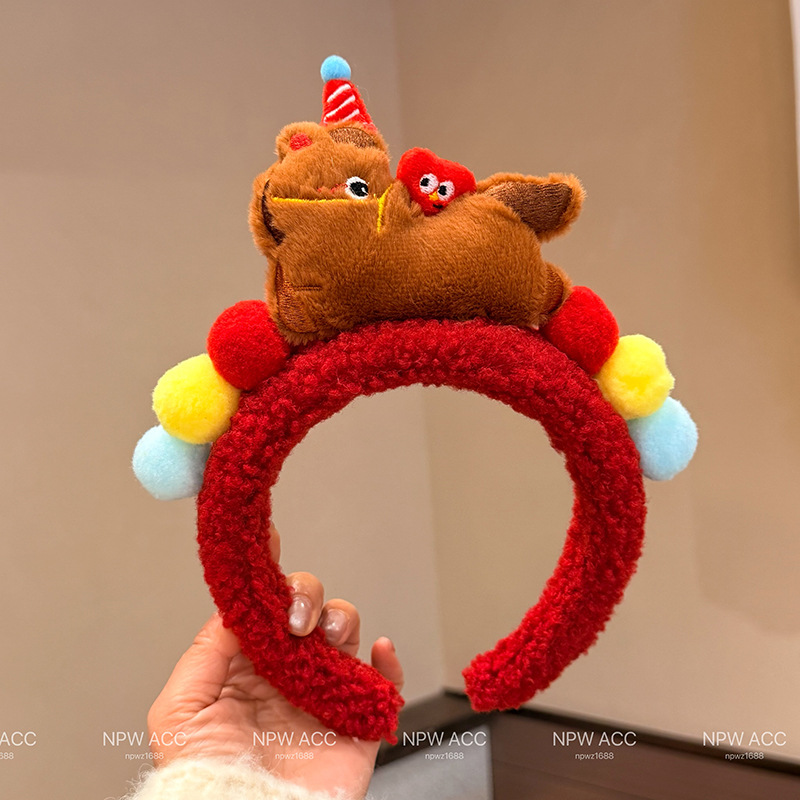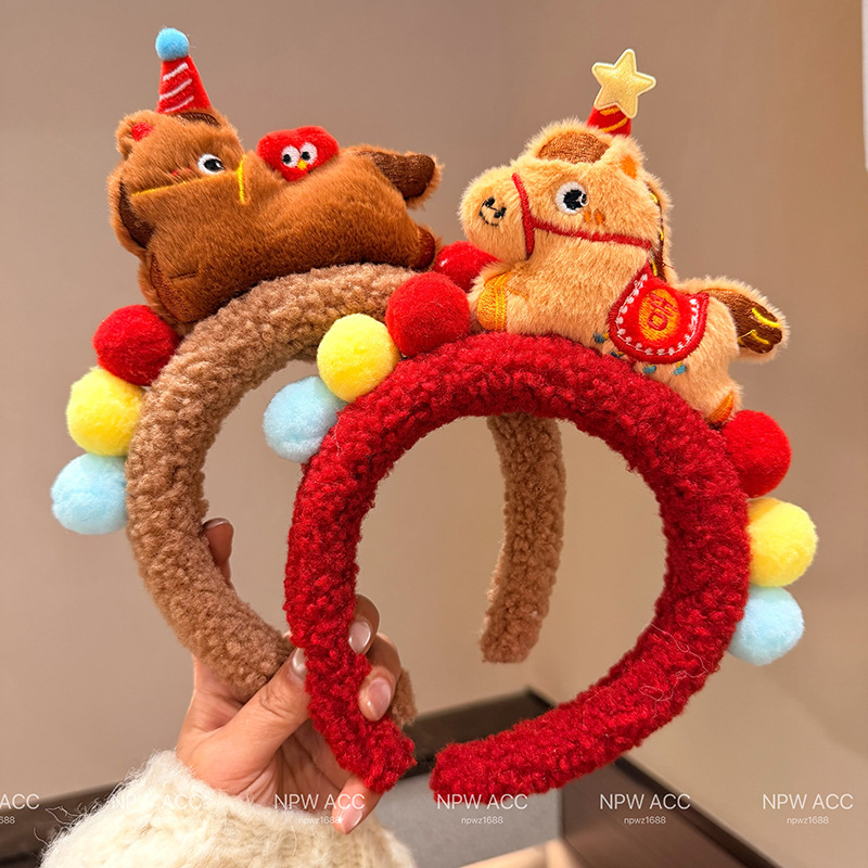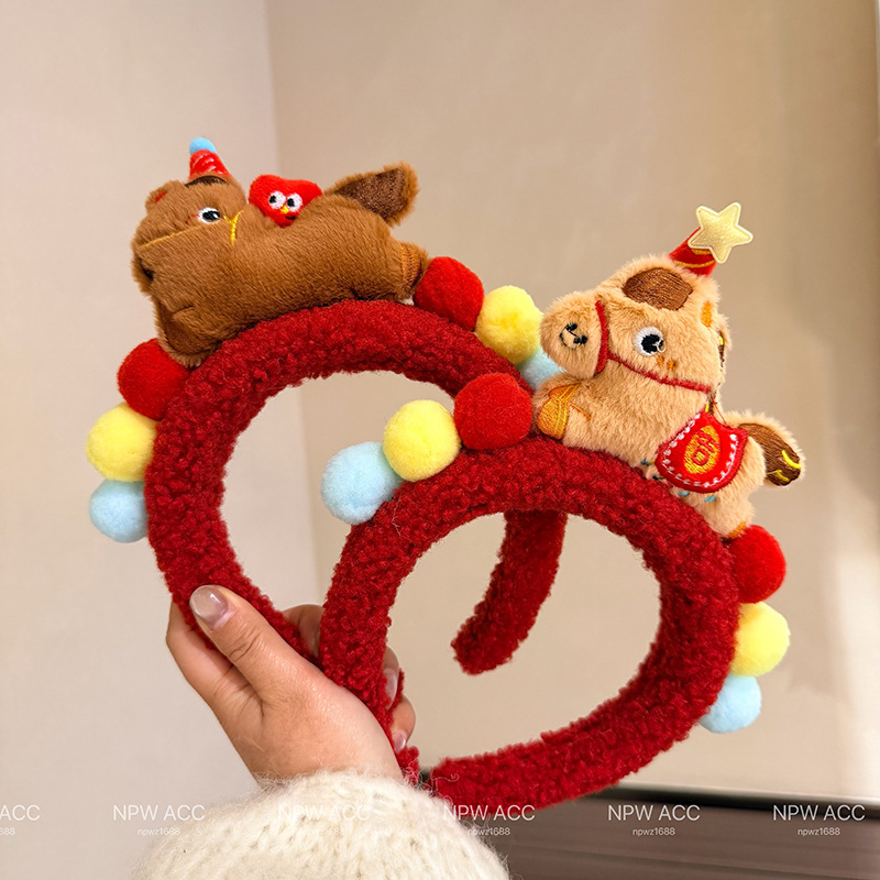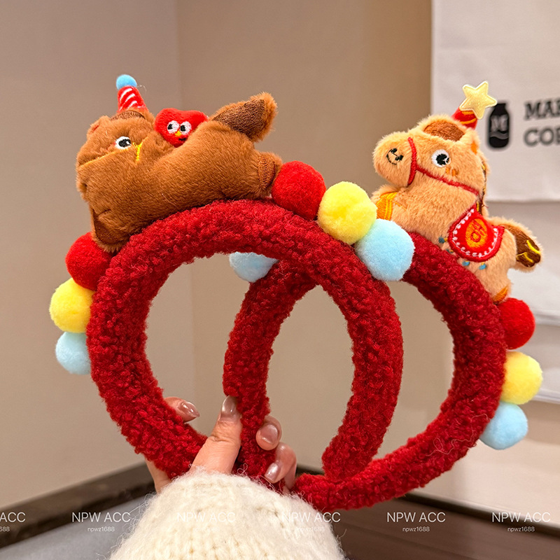 2026秋冬新款新年红小马发饰发箍元旦儿童可爱不伤发新年头箍发饰