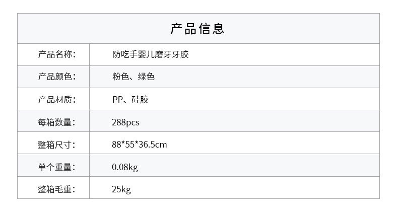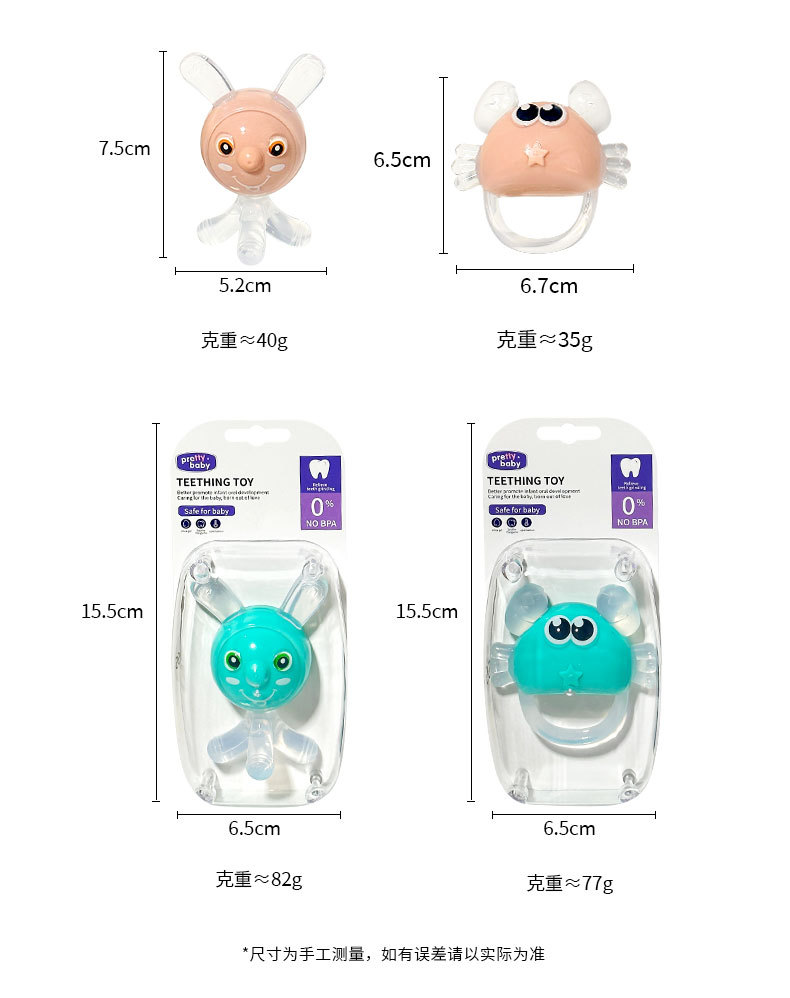 材质: PP硅胶 品牌: 美婴堂 适用年龄: 3个月以上 货号: FZ-220-Y-144 是否进口: 否 货源类别: 现货 包装: 单个装 颜色: 牙胶【螃蟹小鹿】混装 是否跨境出口专供货源: 是 主要下游平台: ebay,亚马逊,wish,速卖通,LA 主要销售地区: 欧洲,南美,东南亚,北美,东北亚,中东, 有可授权的自有品牌: 是