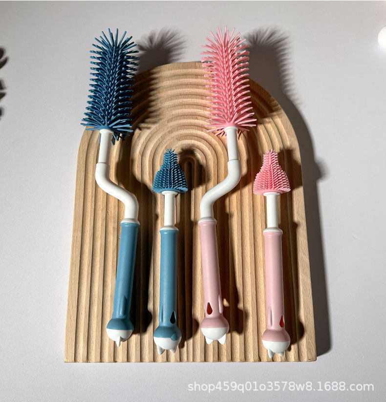 硅胶奶瓶刷360°清洁长柄杯刷茶杯玻璃杯奶嘴刷套装厂家批发跨境