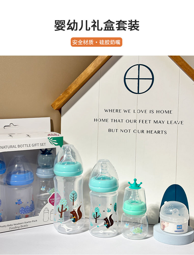 新生儿奶瓶 婴儿0-6个月防胀气宝宝防摔PP奶瓶四件套装送礼 English | 投诉