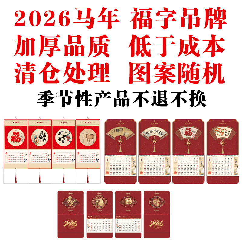 2026正六通胜吊牌家用挂墙月历烫金福字日历广告logo定 zhi挂历 English | 投诉