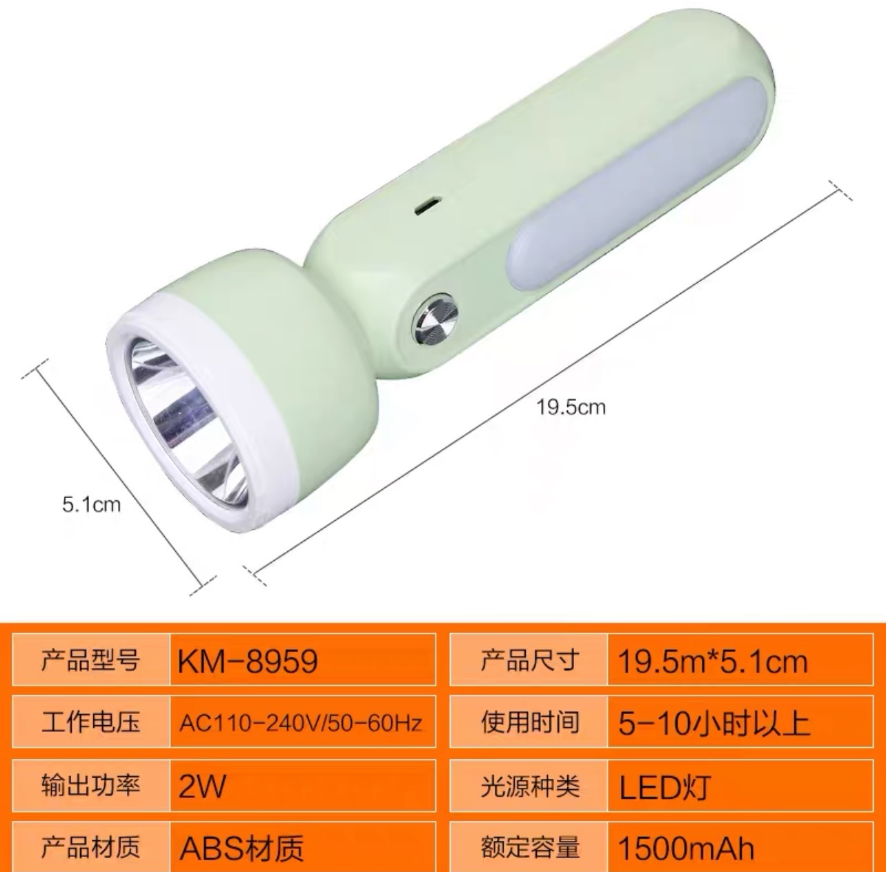 康铭户外手电筒KM-8959锂电LED手电车用便携家用学生强光USB充电