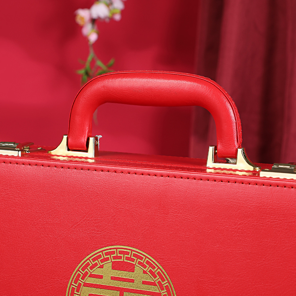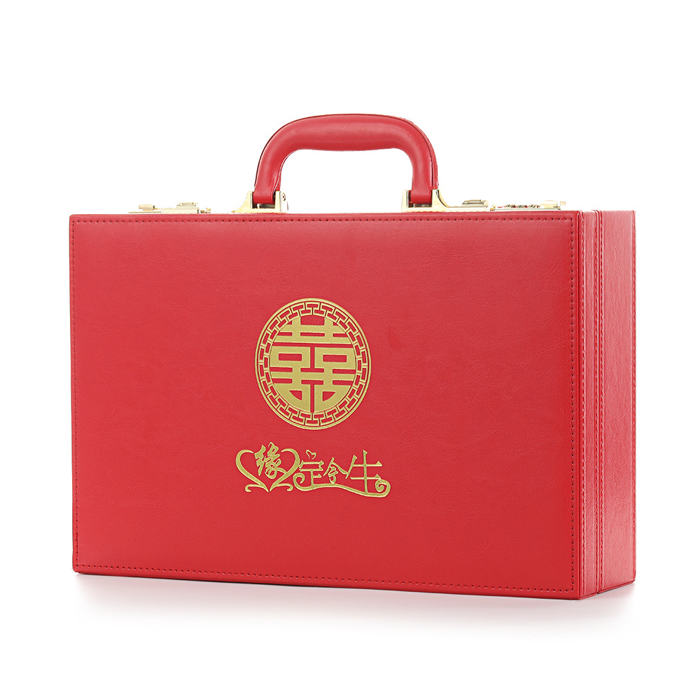 新款婚礼高档彩礼盒订婚皮质手提婚庆用品带锁彩礼盒子订婚礼金盒 English | 投诉