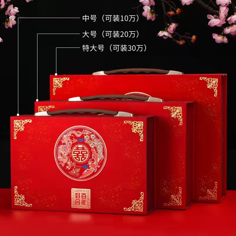 2025提亲盒子聘礼金首饰盒带锁扣3万10w手提箱30w现金结婚彩礼盒 English | 投诉