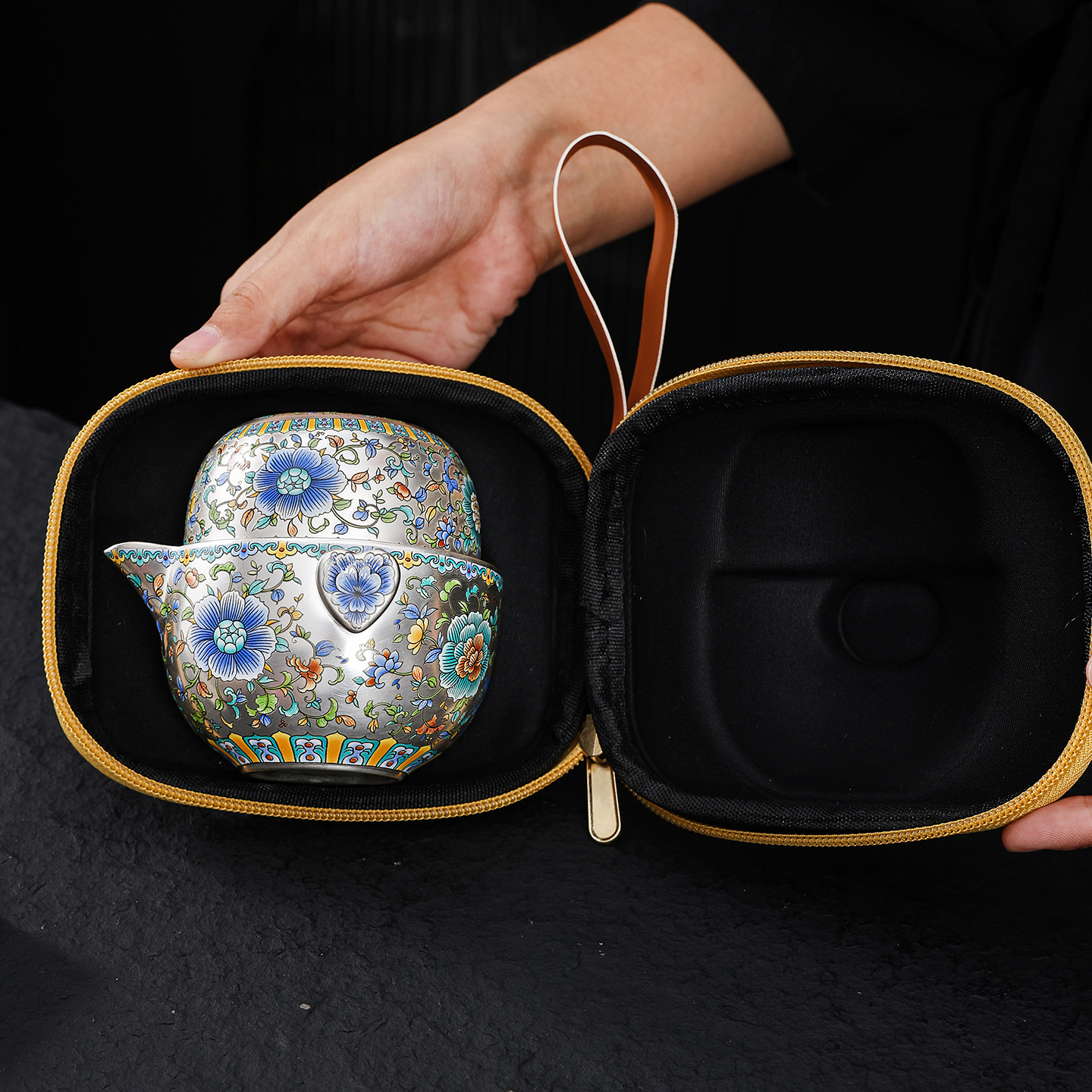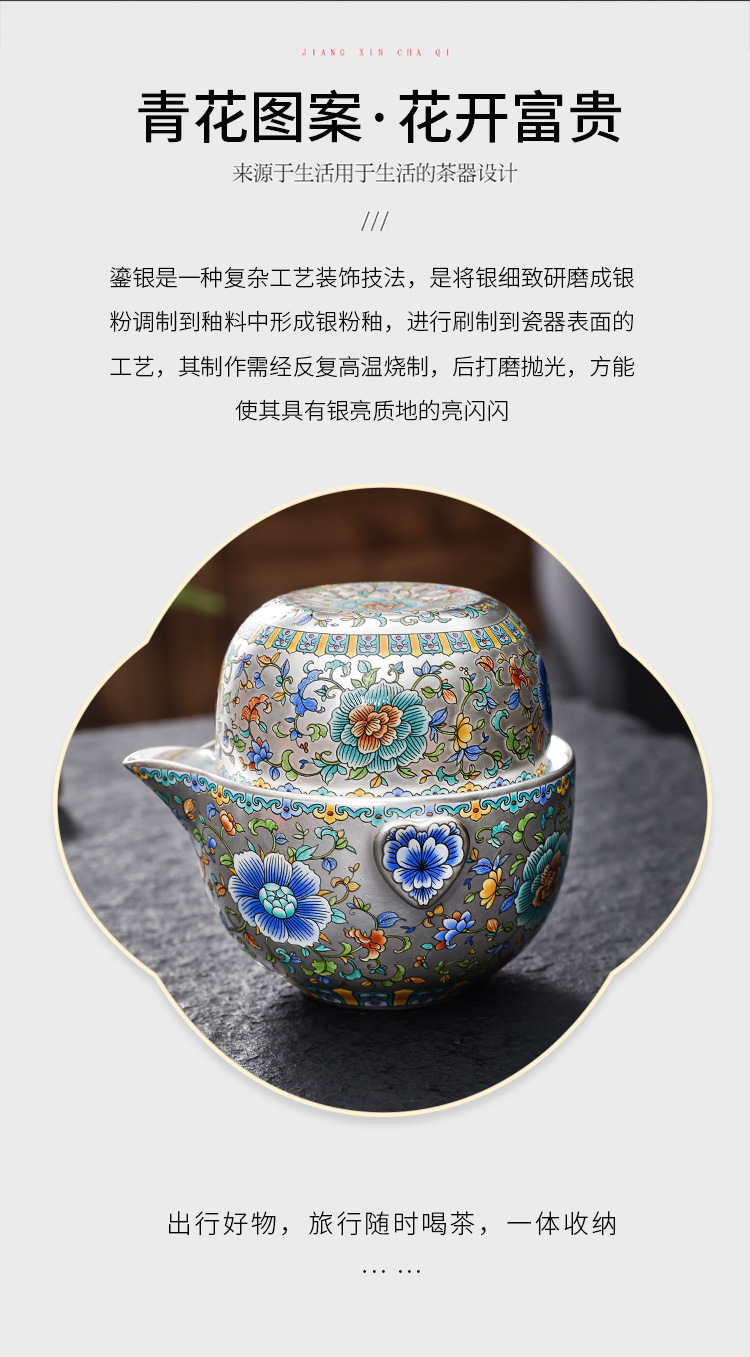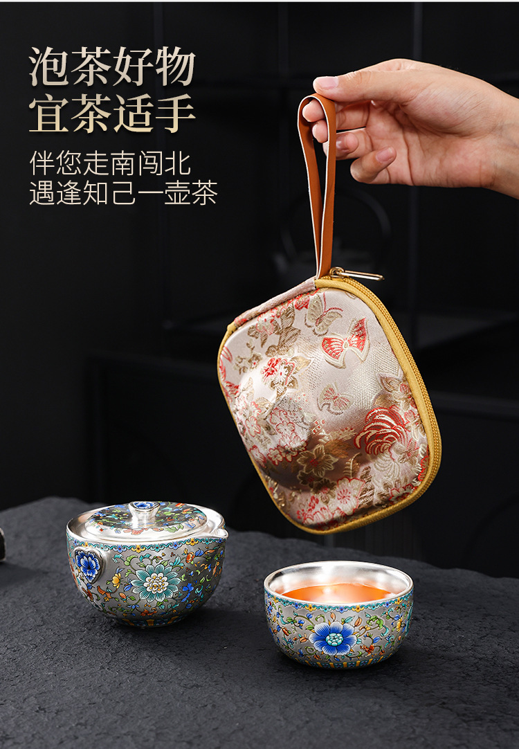 金银错瓷鎏银旅行茶具送领导生日乔迁礼物商务送礼伴手礼高档礼品