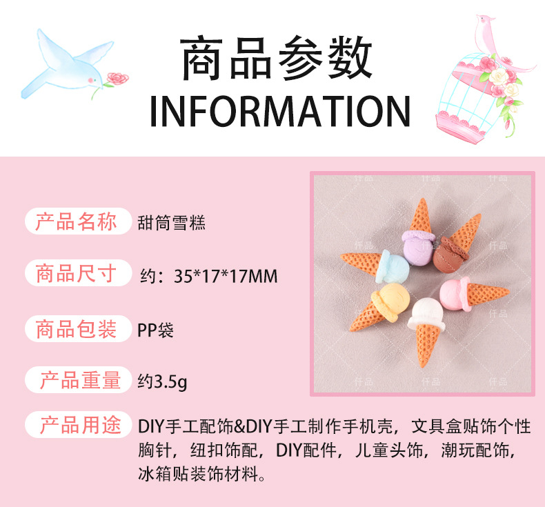 材质: 塑料/树脂 处理工艺: 滴油 流行元素: 冰淇淋 种类: 配件 品牌: 希可儿 产地: 义乌 货号: s8 颜色: 1号,2号,3号,4号,5号,6号 是否跨境出口专供货源: 是 主要下游平台: wish,快手,SHEIN,shopee 有可授权的自有品牌: 是 上市年份/季节: 2026年春季 主要销售地区: 北美,其他 流行元素分类: 水果/食品 重量: 0.004 kg/个