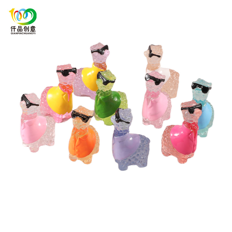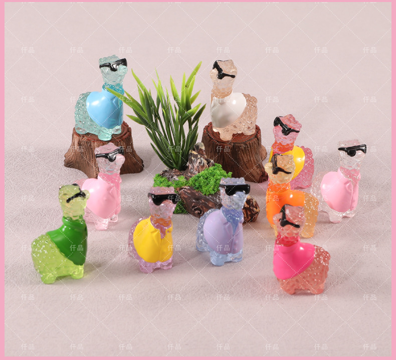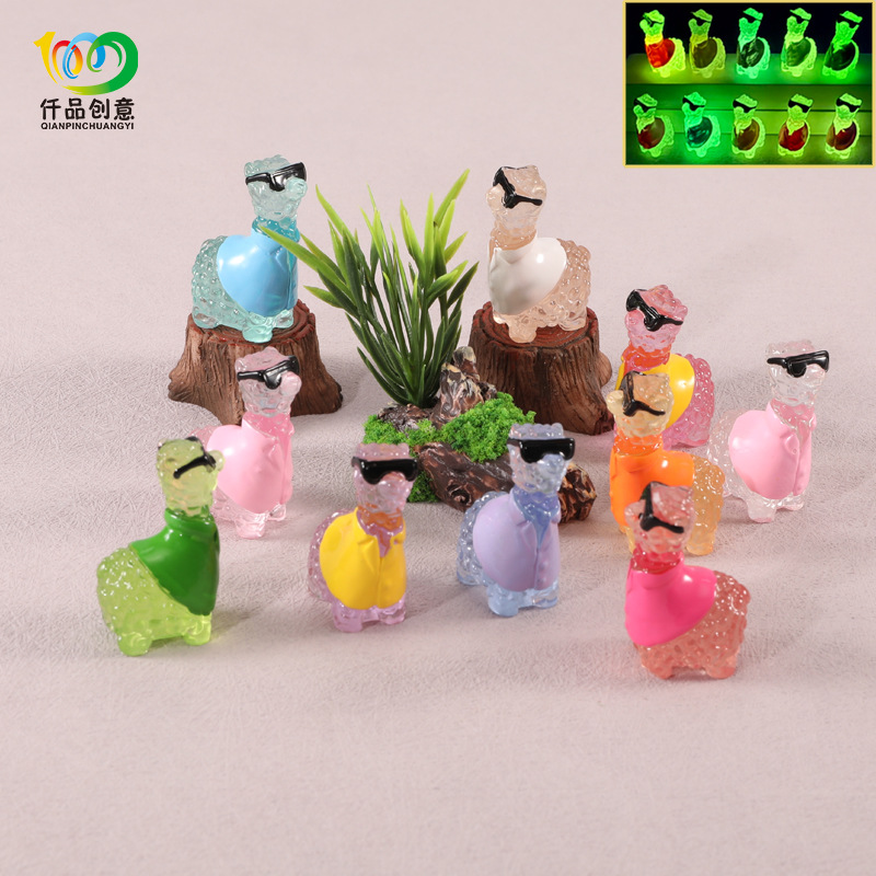 夜光小羊羊驼微景观桌面摆件DIY树脂装饰配件钥匙扣手机车载摆件