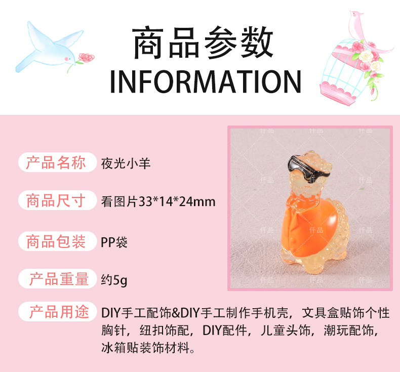 夜光小羊羊驼微景观桌面摆件DIY树脂装饰配件钥匙扣手机车载摆件 English | 投诉
