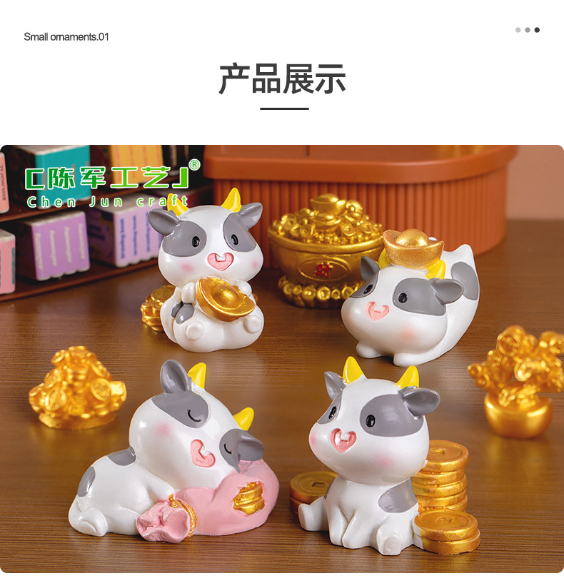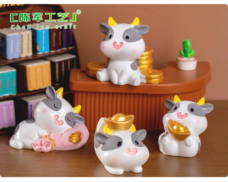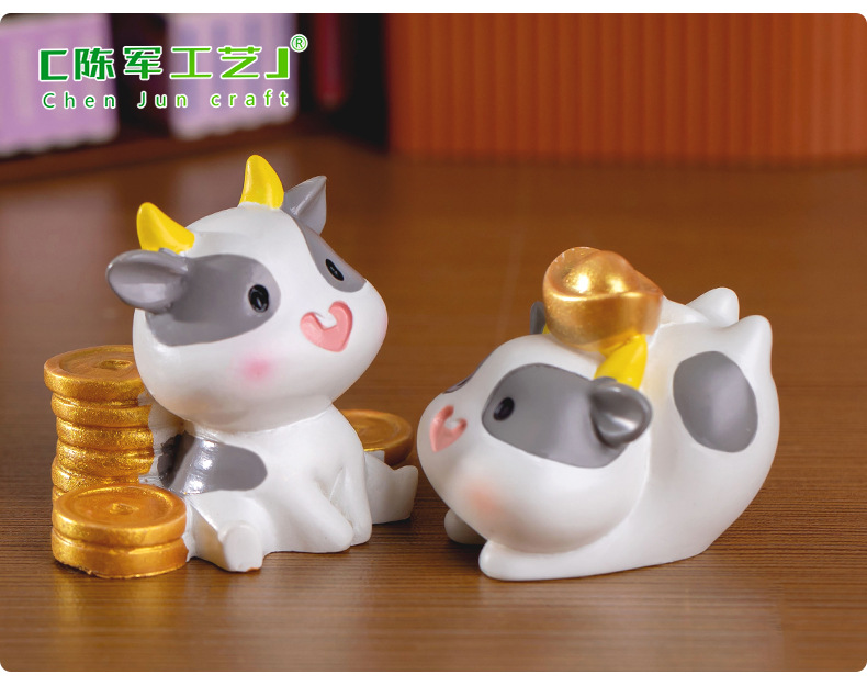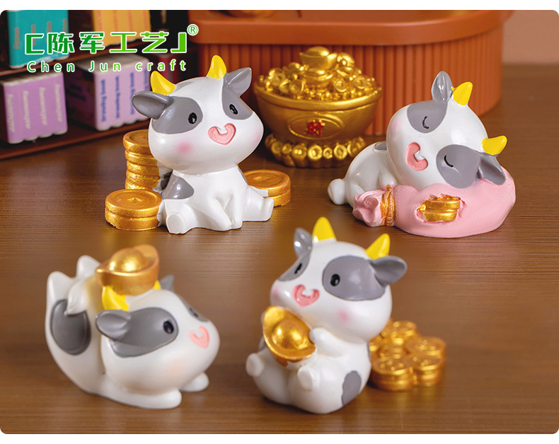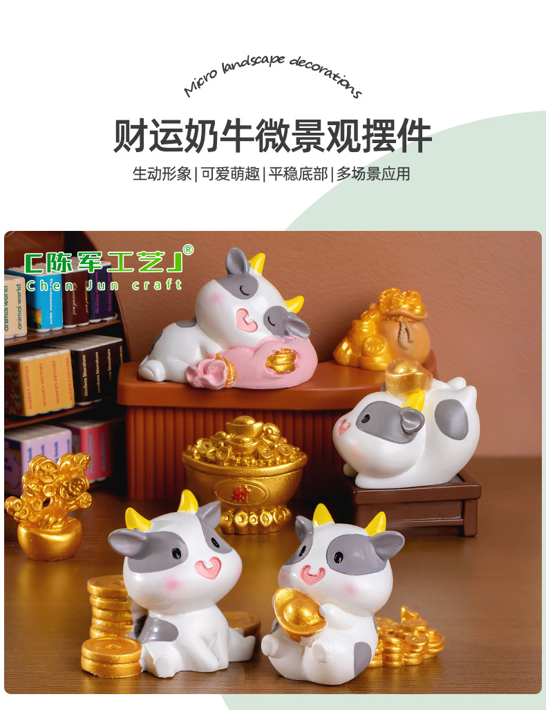 微景观创意可爱财运奶牛动物公仔手办装饰品配件办公室桌面小摆件