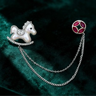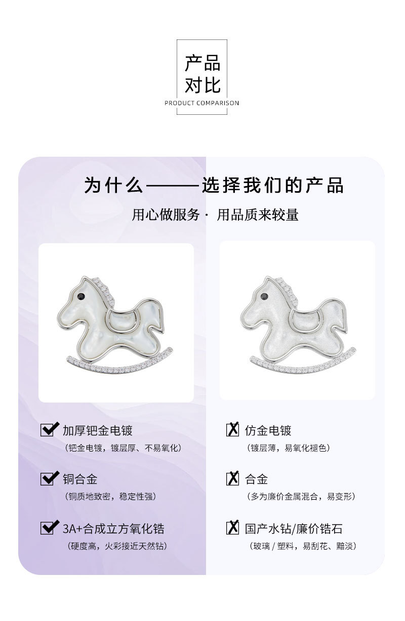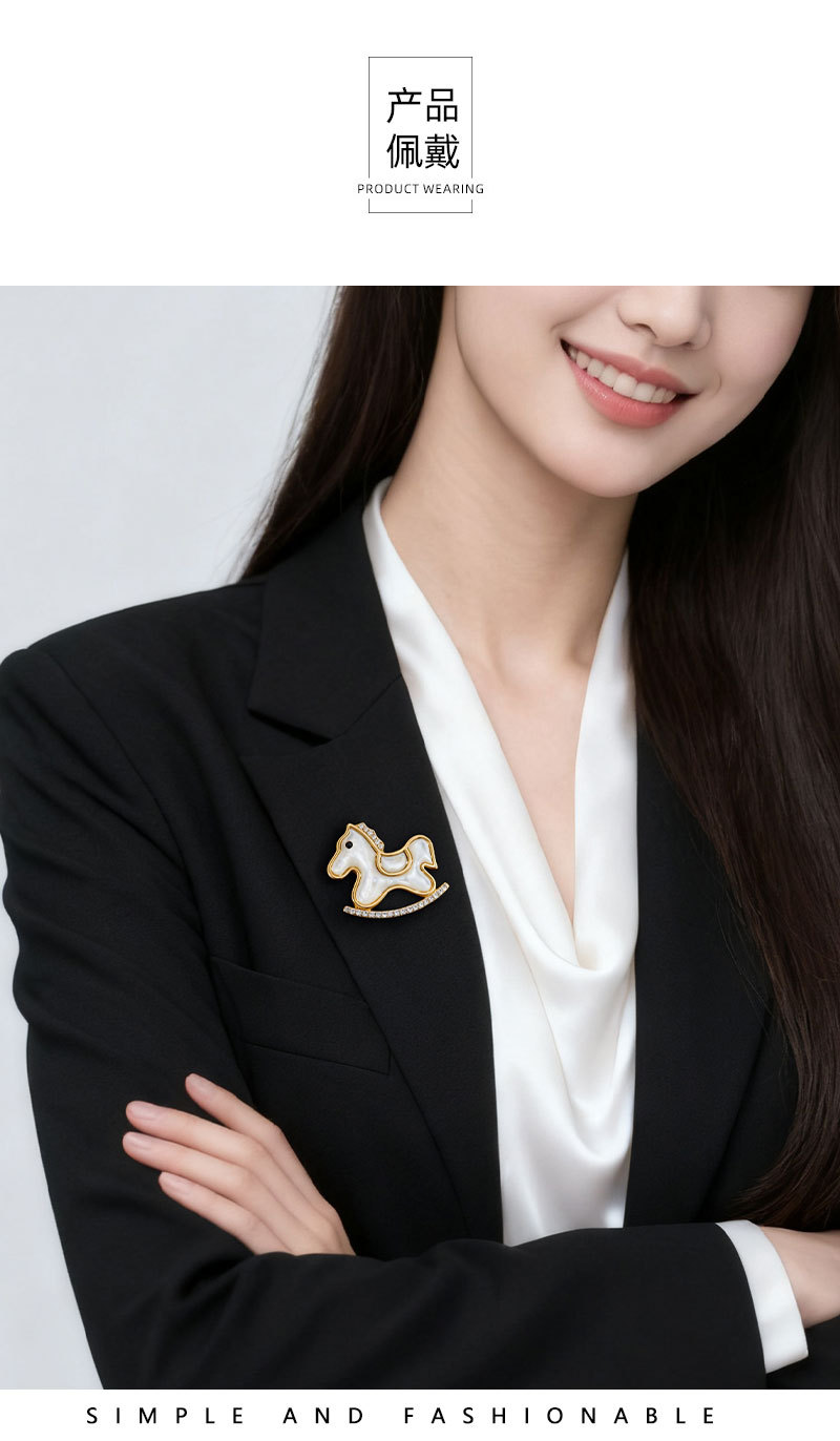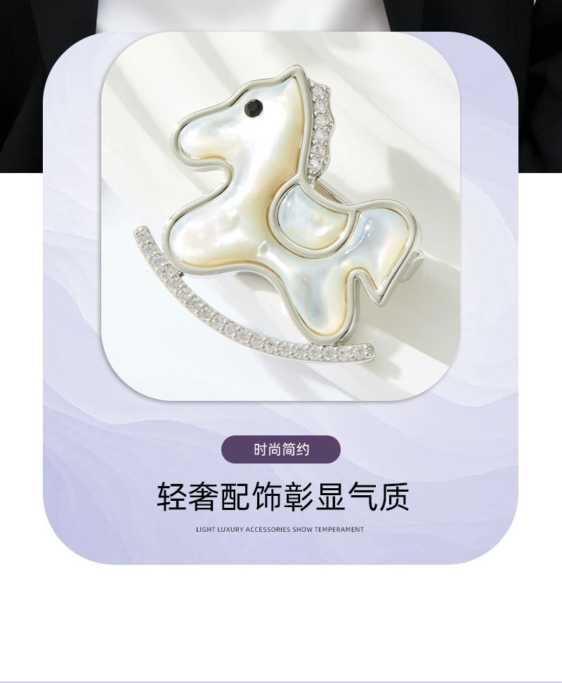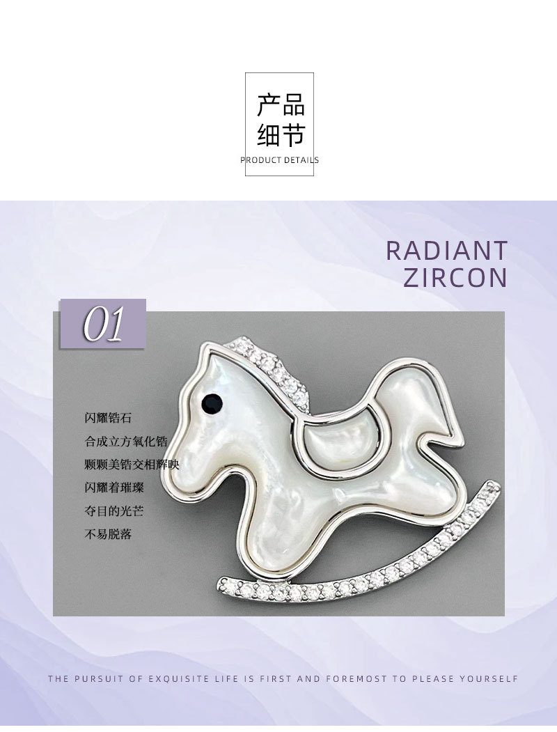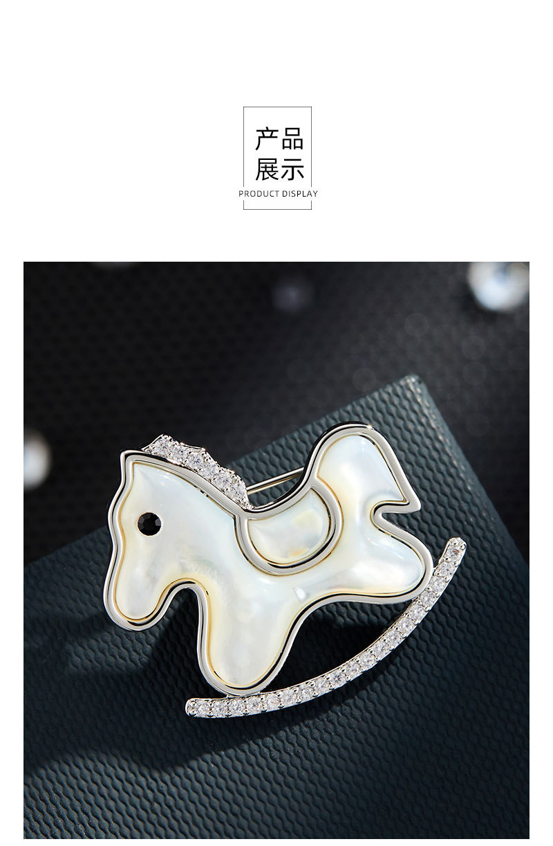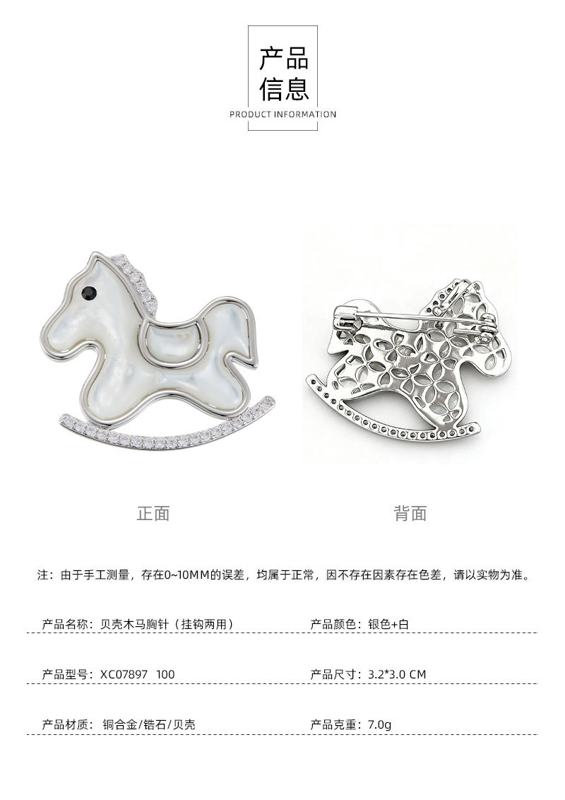 轻奢萌系天然贝母木马胸针铜合金镶锆石真金电镀小马别针爆款胸花 投诉