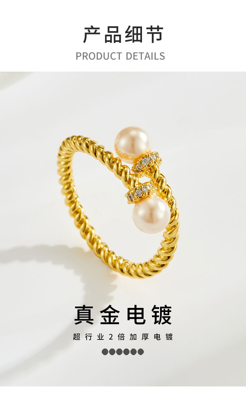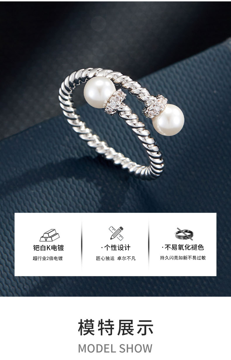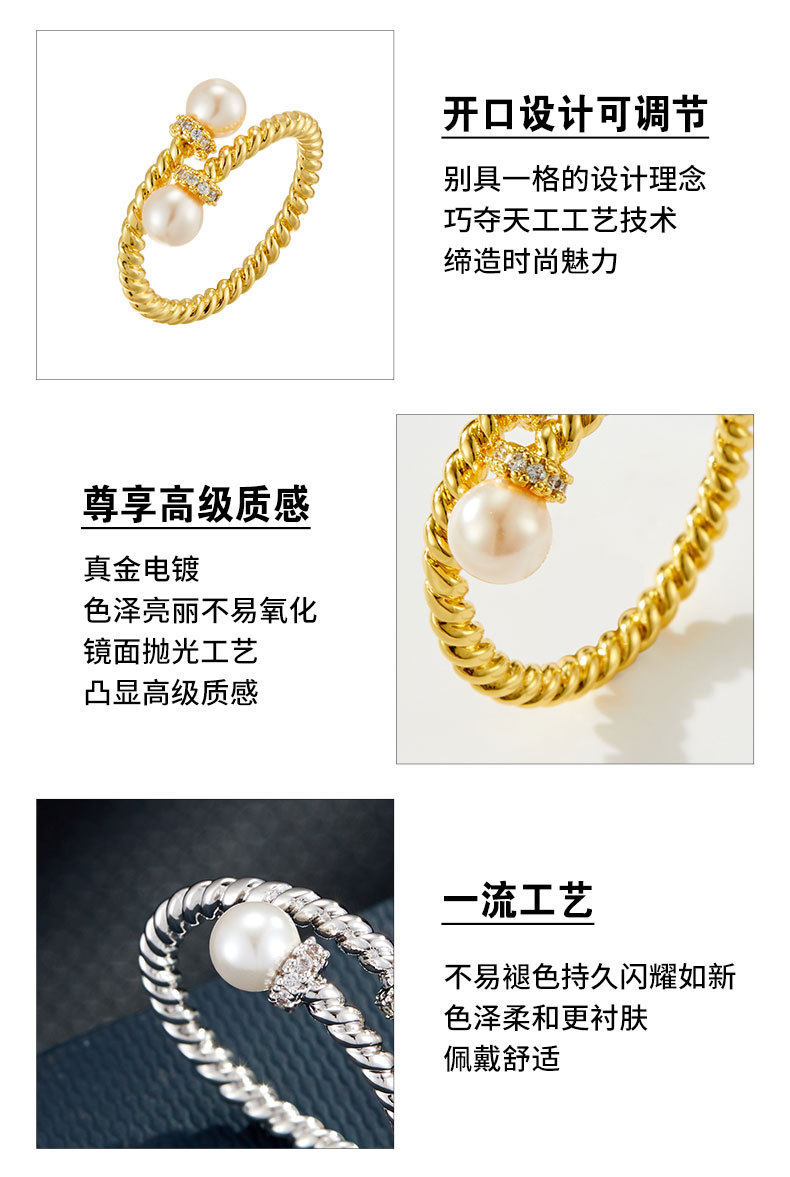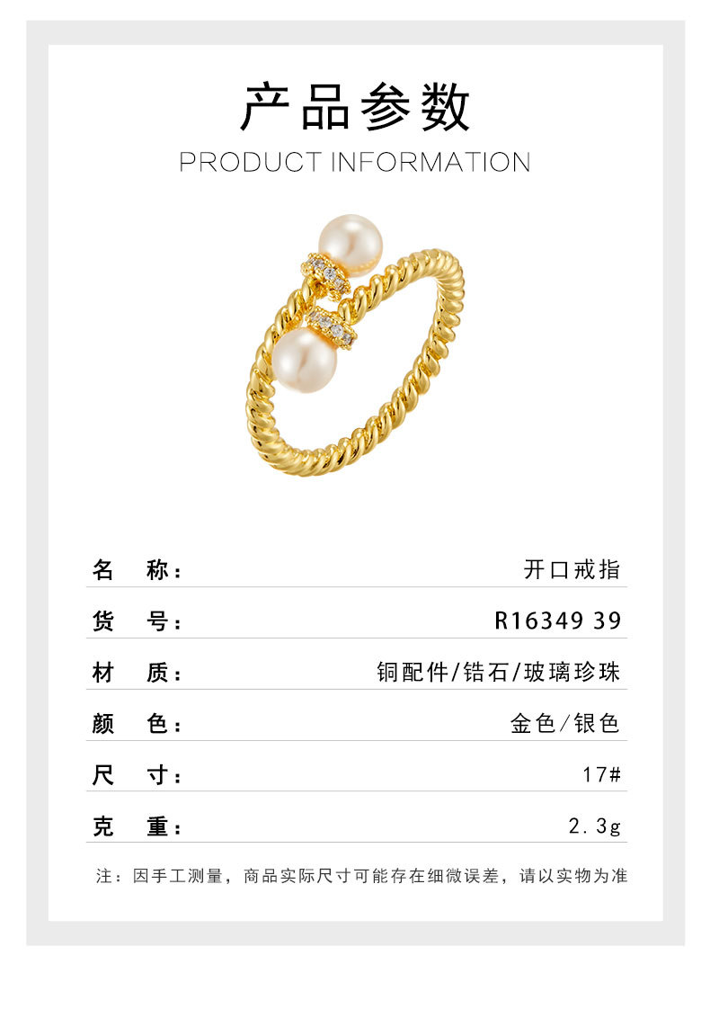 复古交叉麻花纹玻璃珍珠开口戒指可调节设计百搭指环轻奢女食指戒 投诉