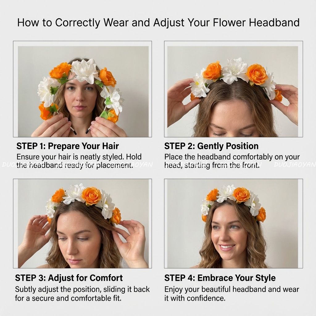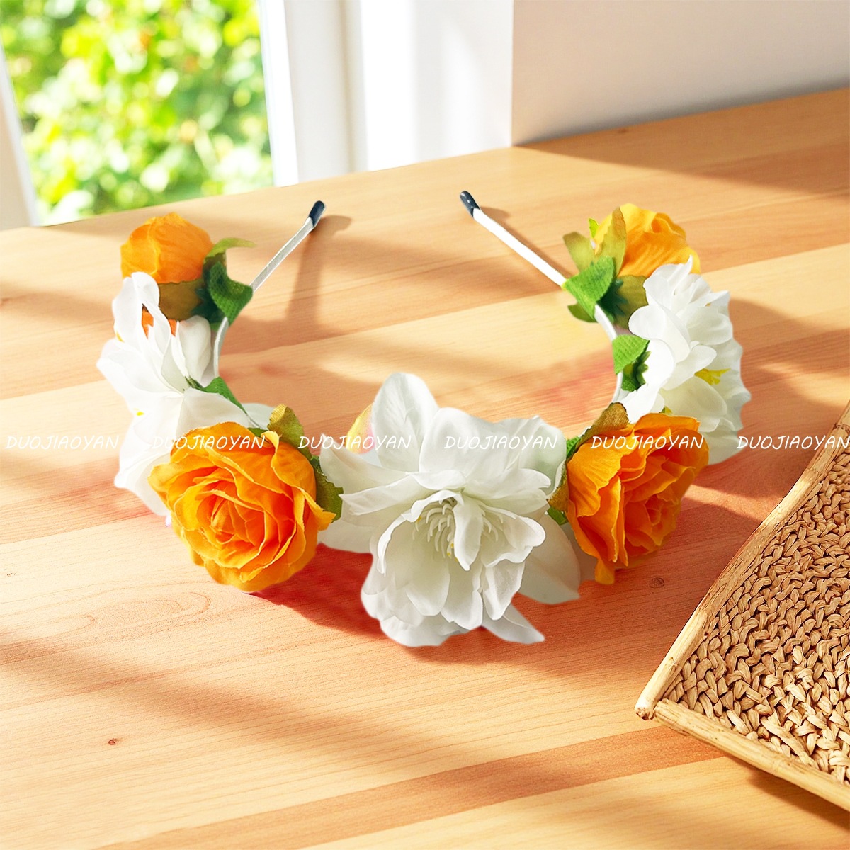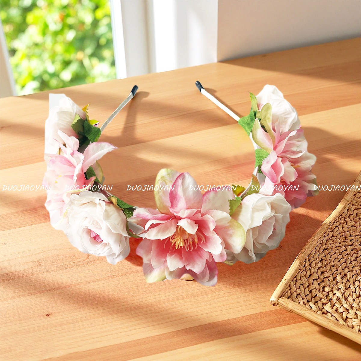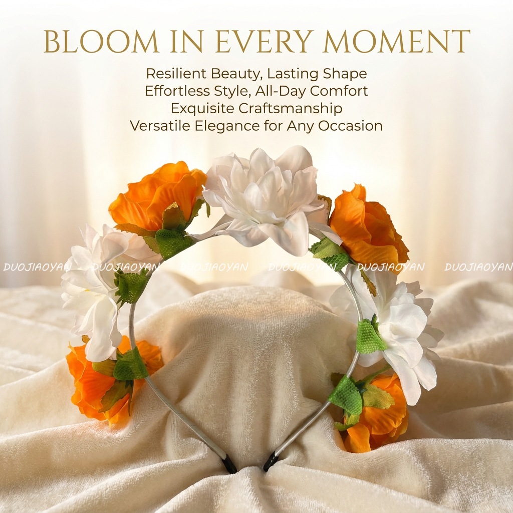 【材料】涤纶花+铁包布发箍