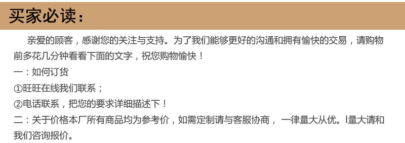 4、关于发货:我们是外贸出口生产厂家,款式众多,所以您下单之后我们开始生产。因为是手工加工,所以比较费时,一般出货时间为下订单后2-7天内,如果有特殊紧急情况,请联系客服说明情况。