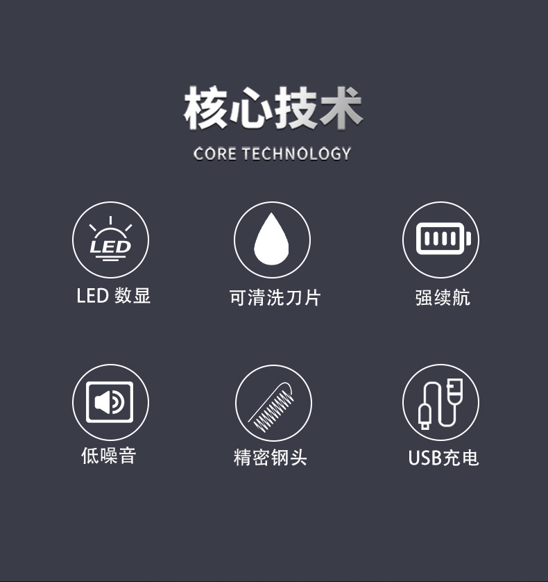 核心卖点:智能数显调节,锋利刀头,低噪音设计。