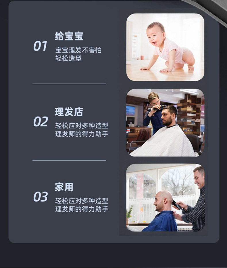 产品优势:持久续航,防水易清洁,适合家庭与理发店。