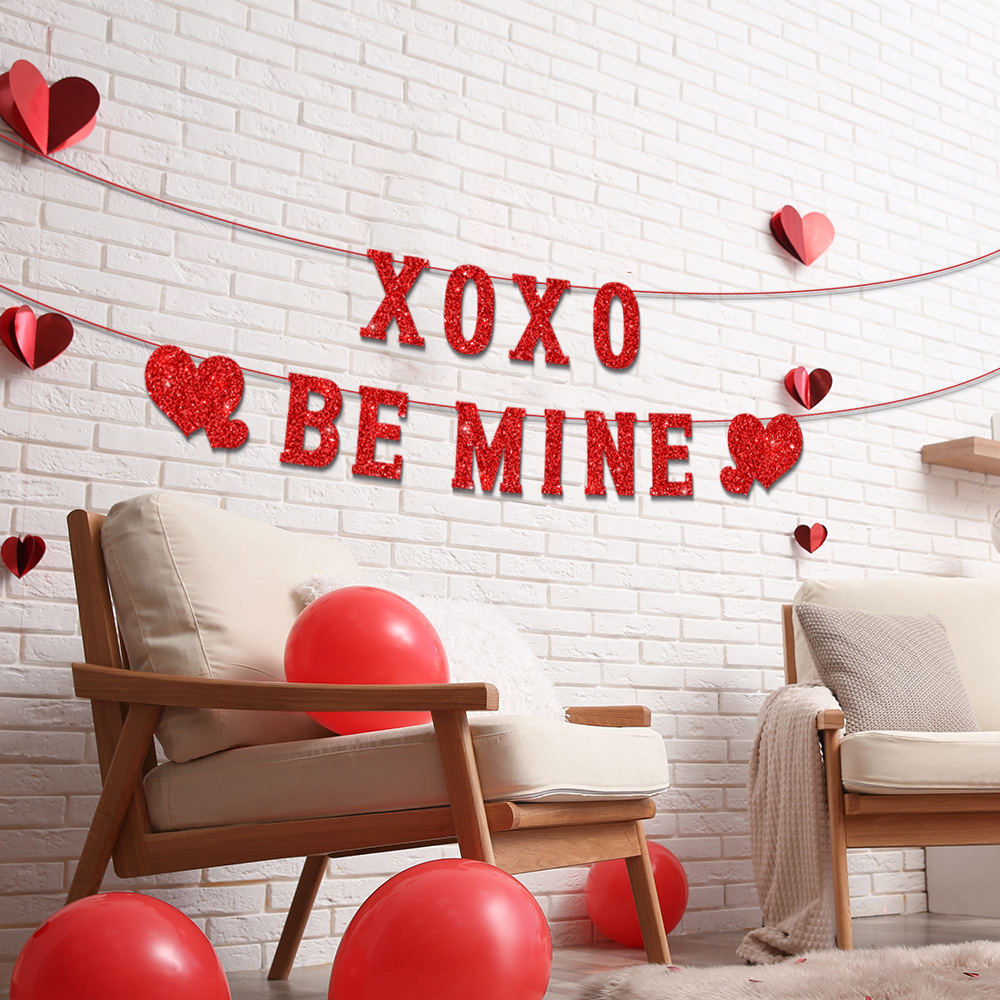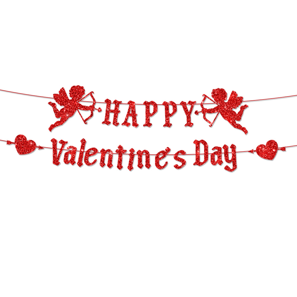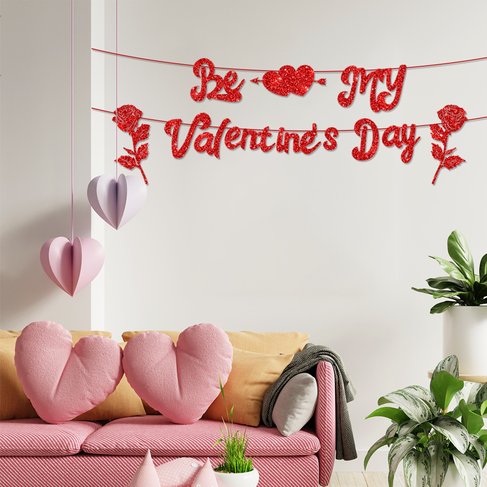 系列:亚马逊新款情人节金葱纸派对场景布置装饰横幅拉旗