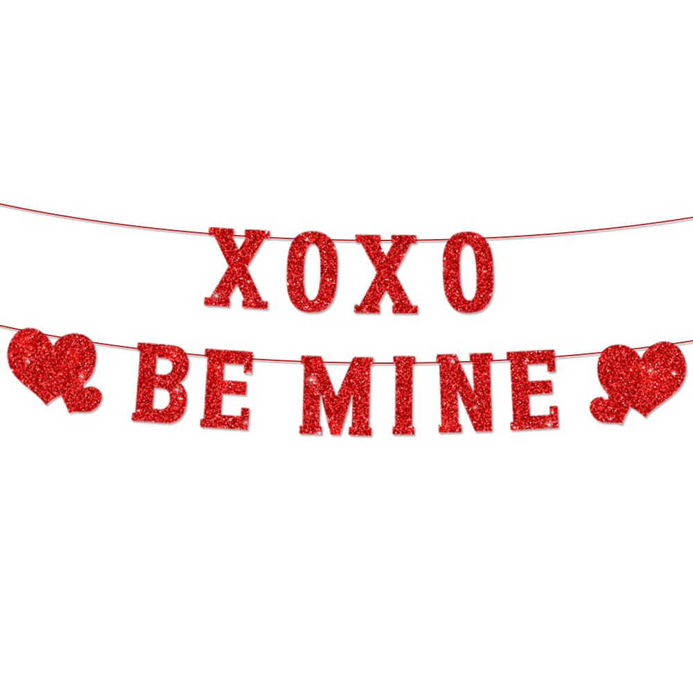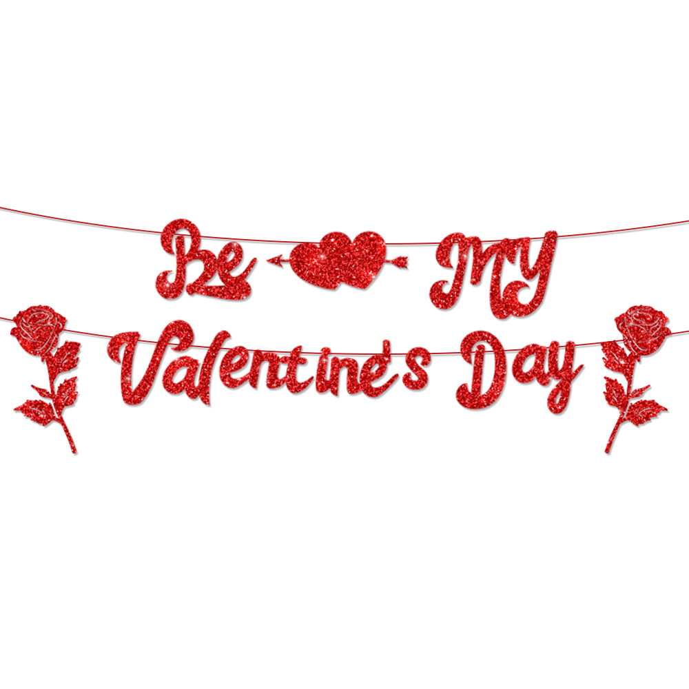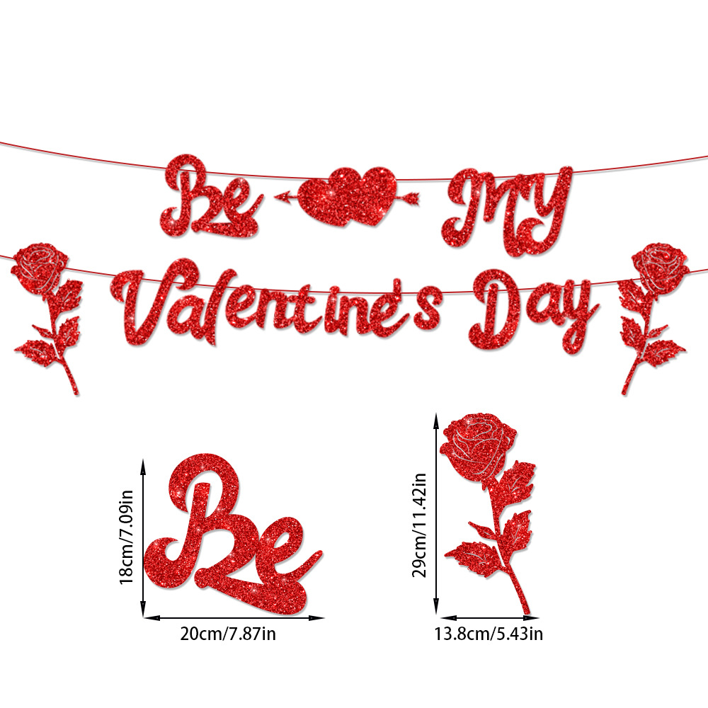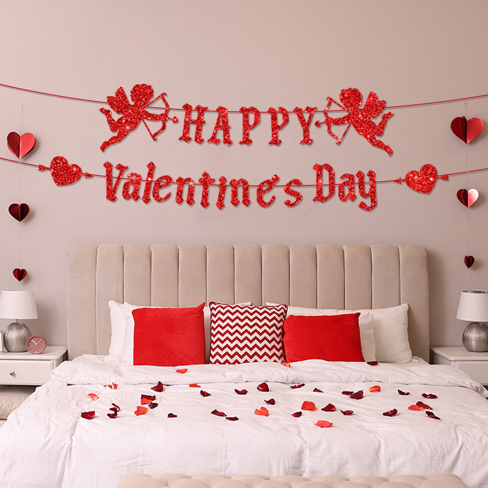 系列:亚马逊新款情人节金葱纸派对场景布置装饰横幅拉旗