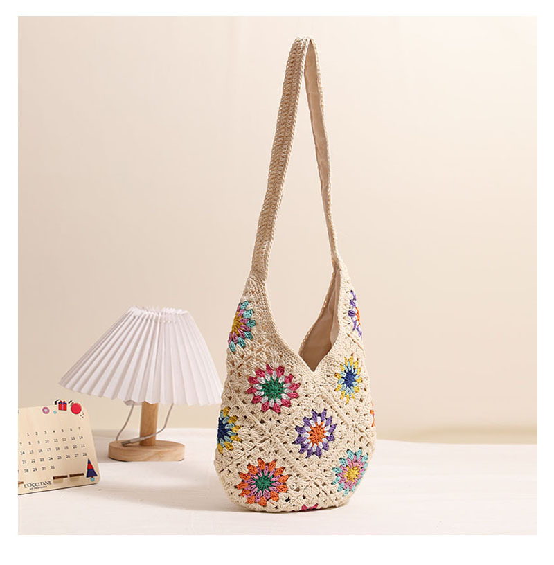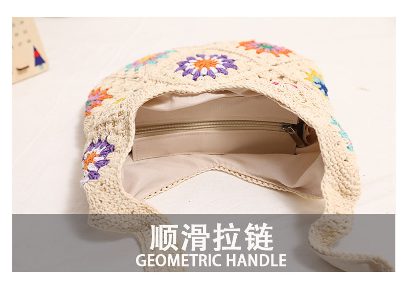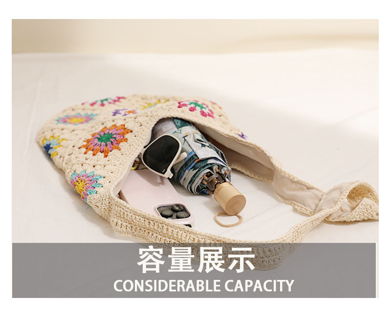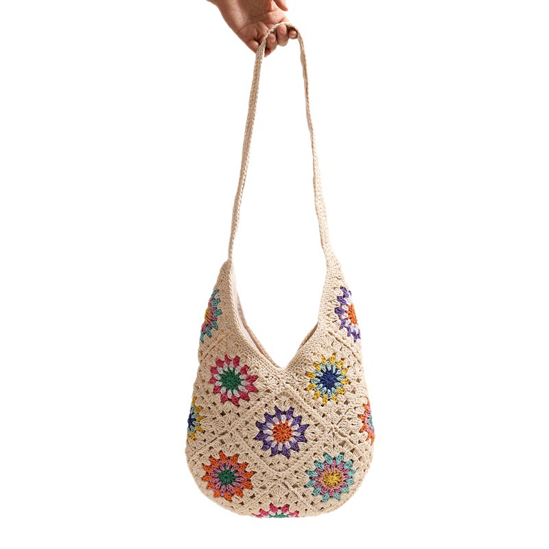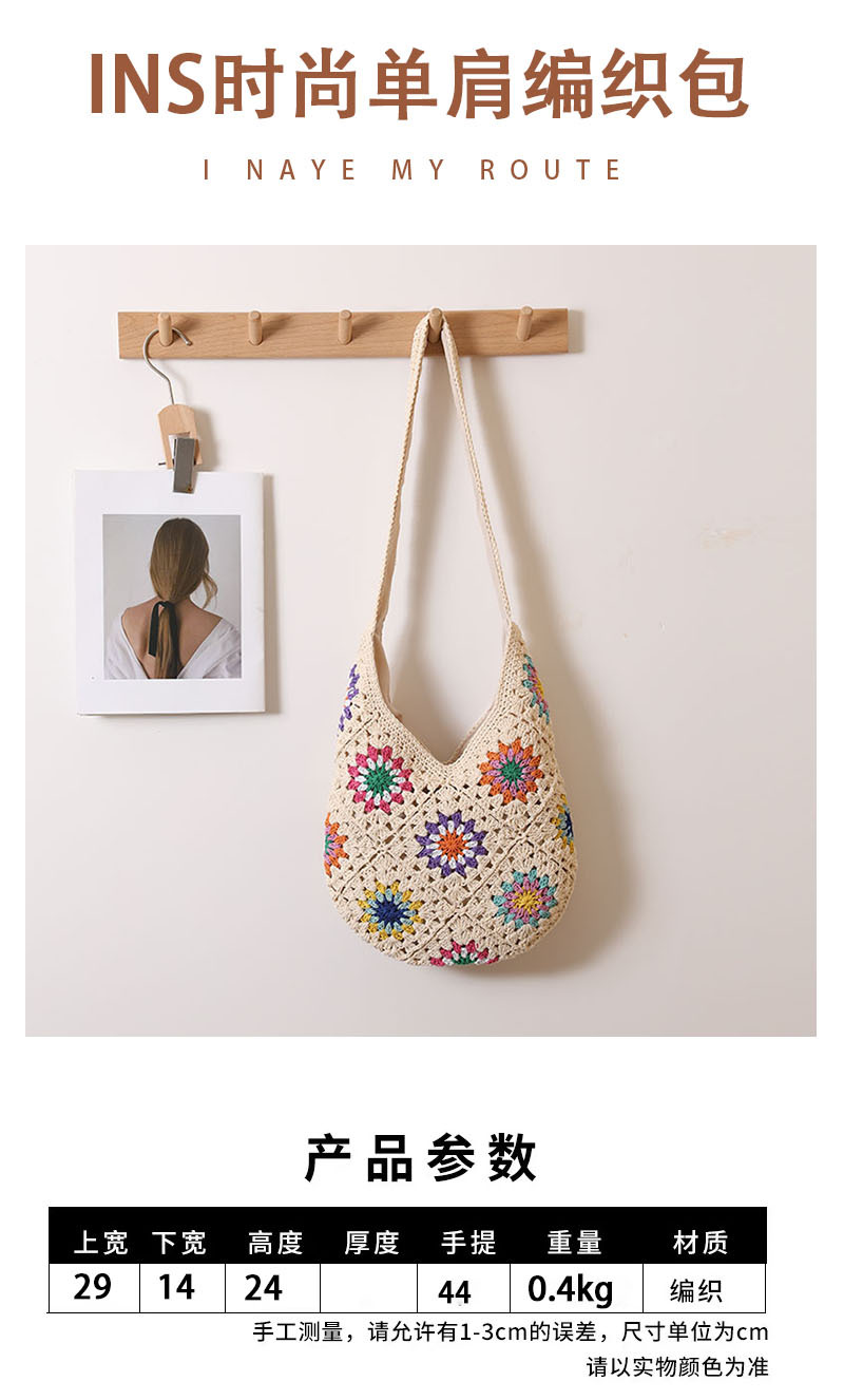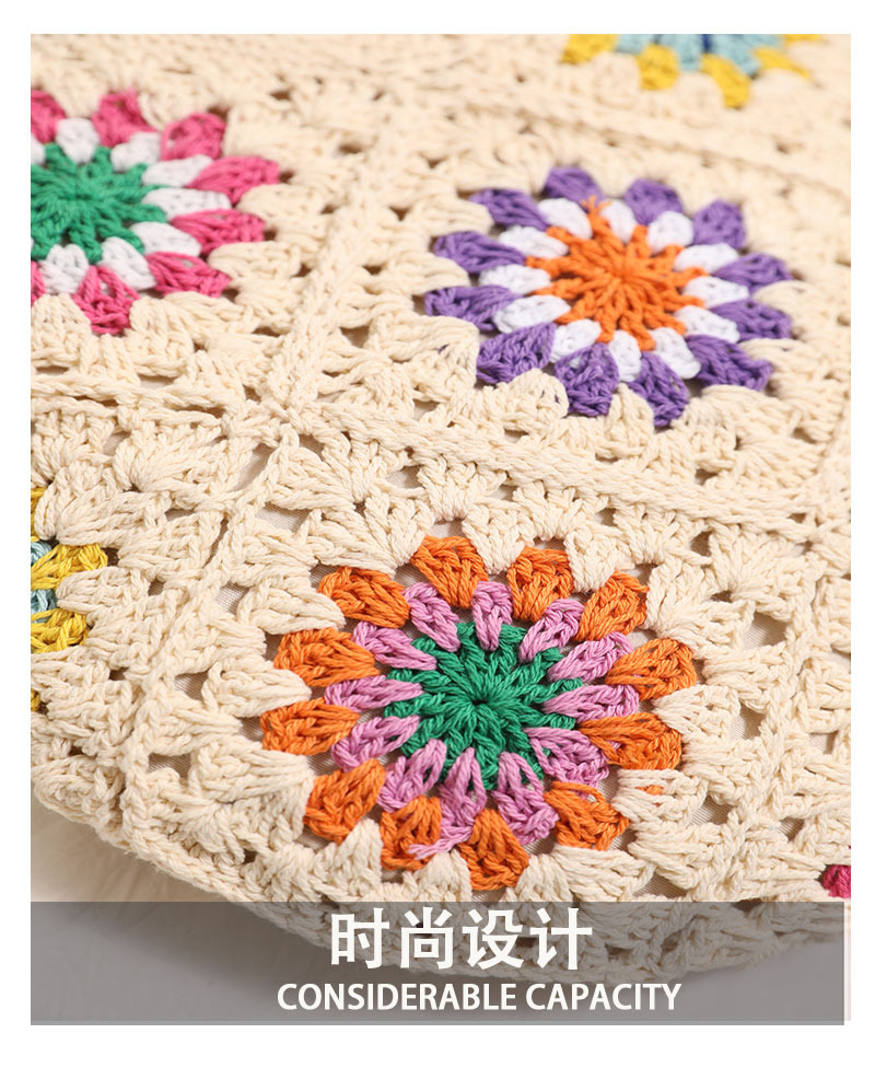 民族风彩色花朵棉线编织包新款休闲草编包度假沙滩包慵懒风单肩包 English | 投诉