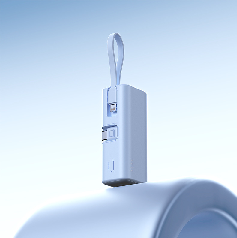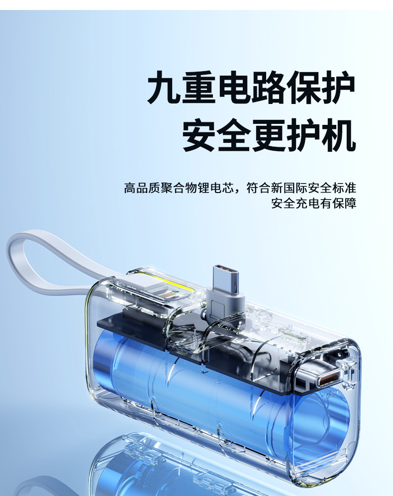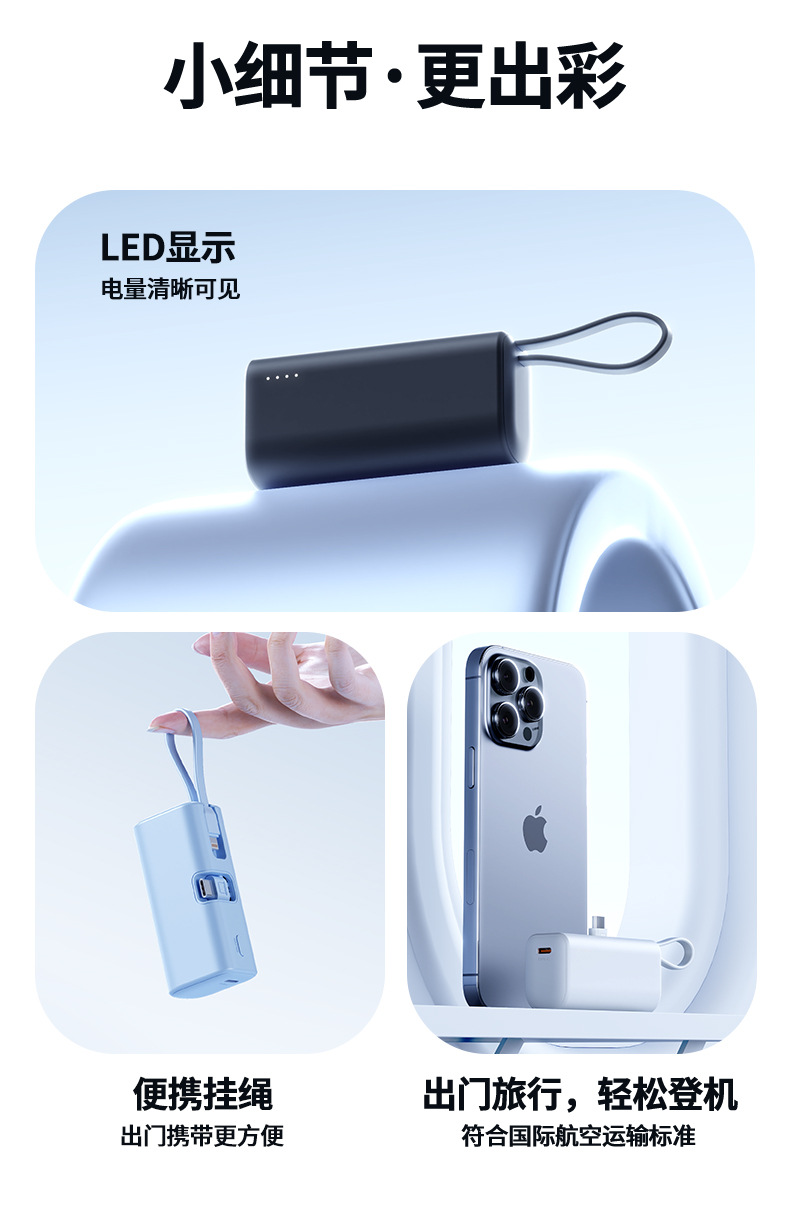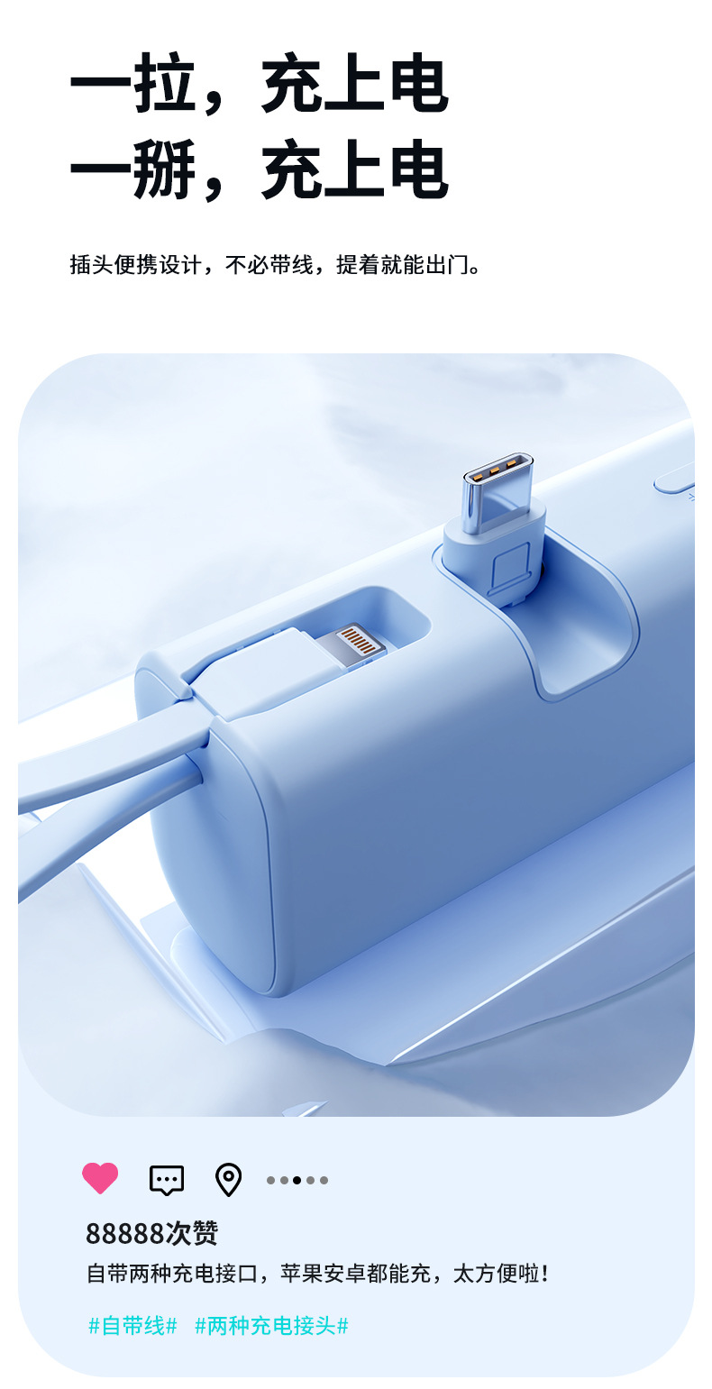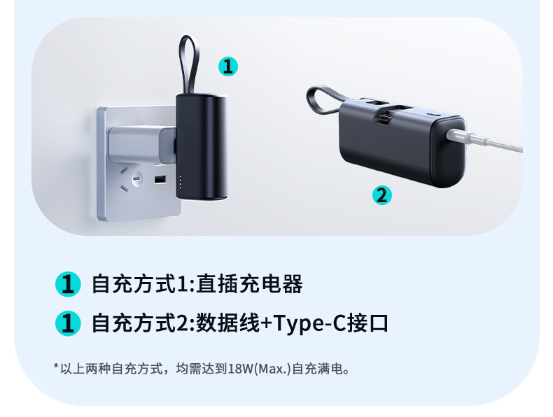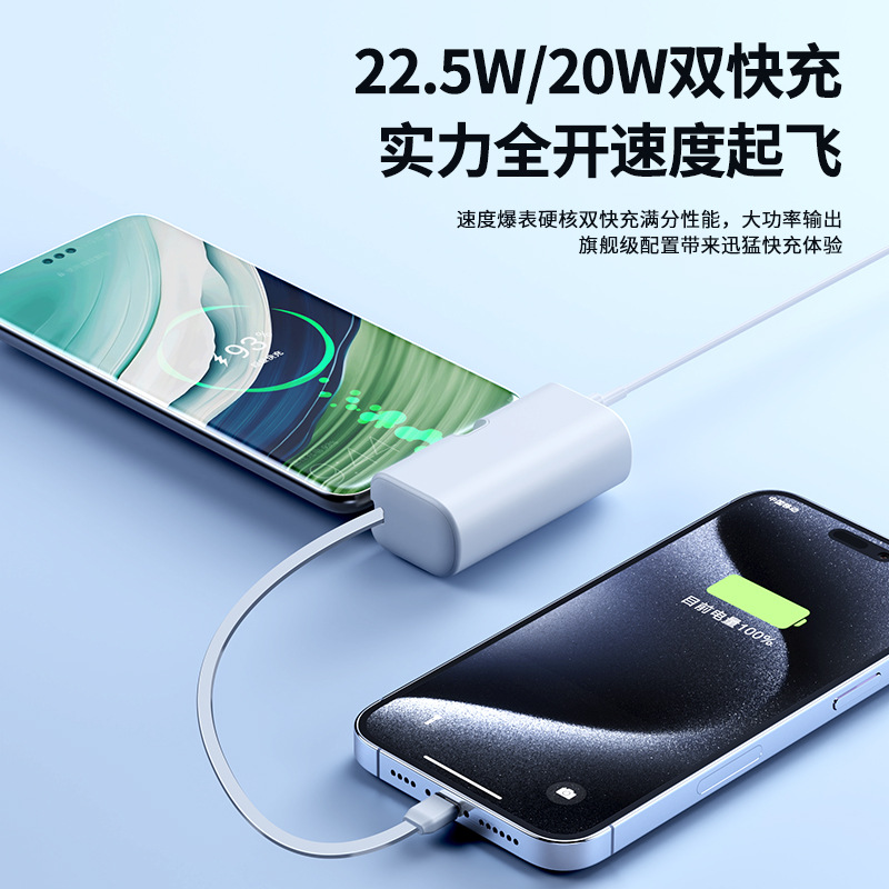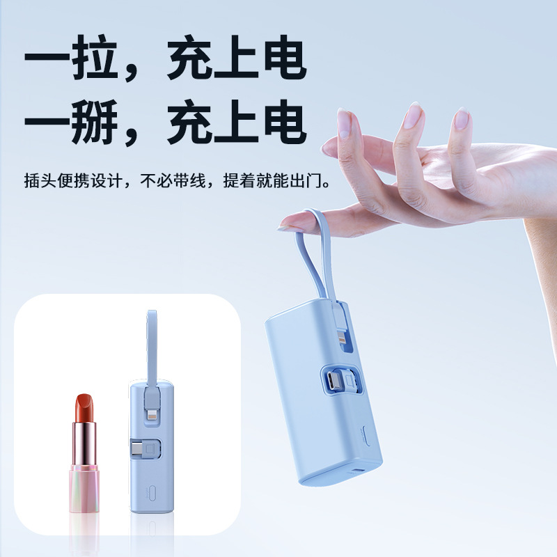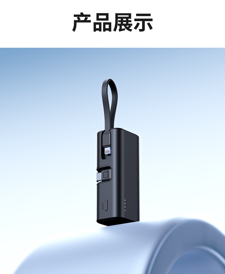 KC跨境胶囊充电宝快充自带线小巧快充便携移动电源双向快充定 制