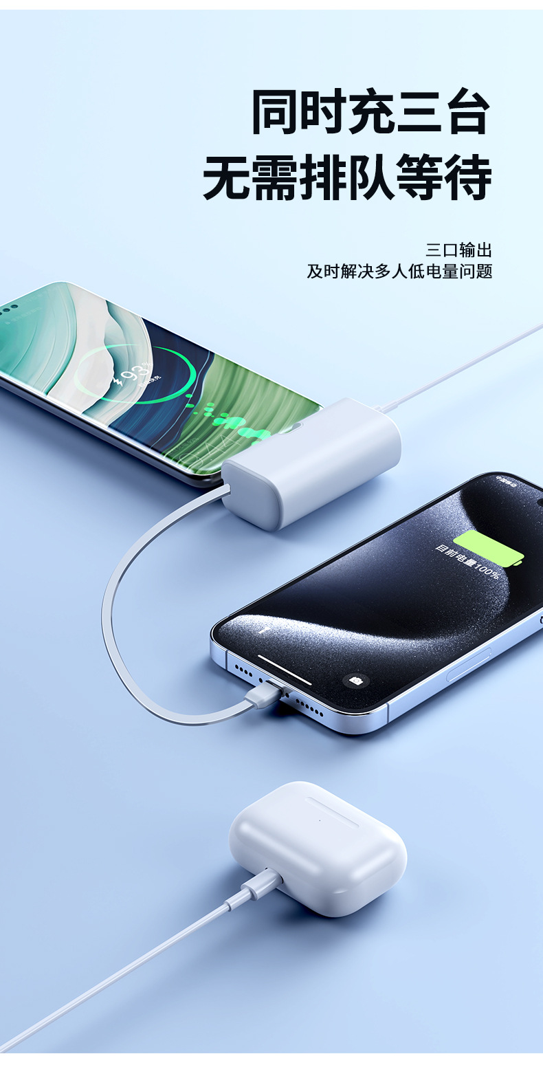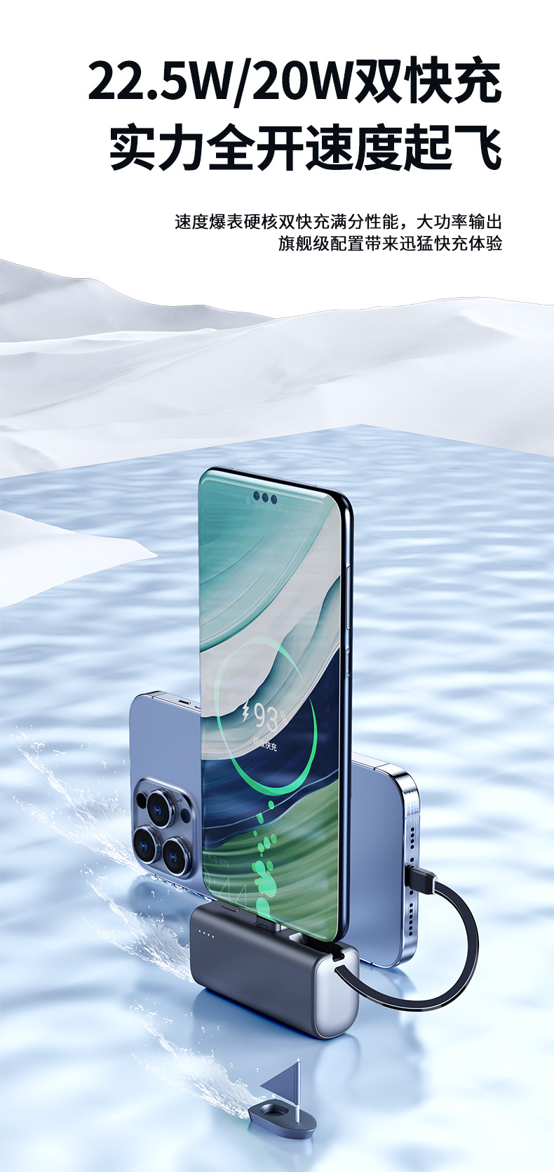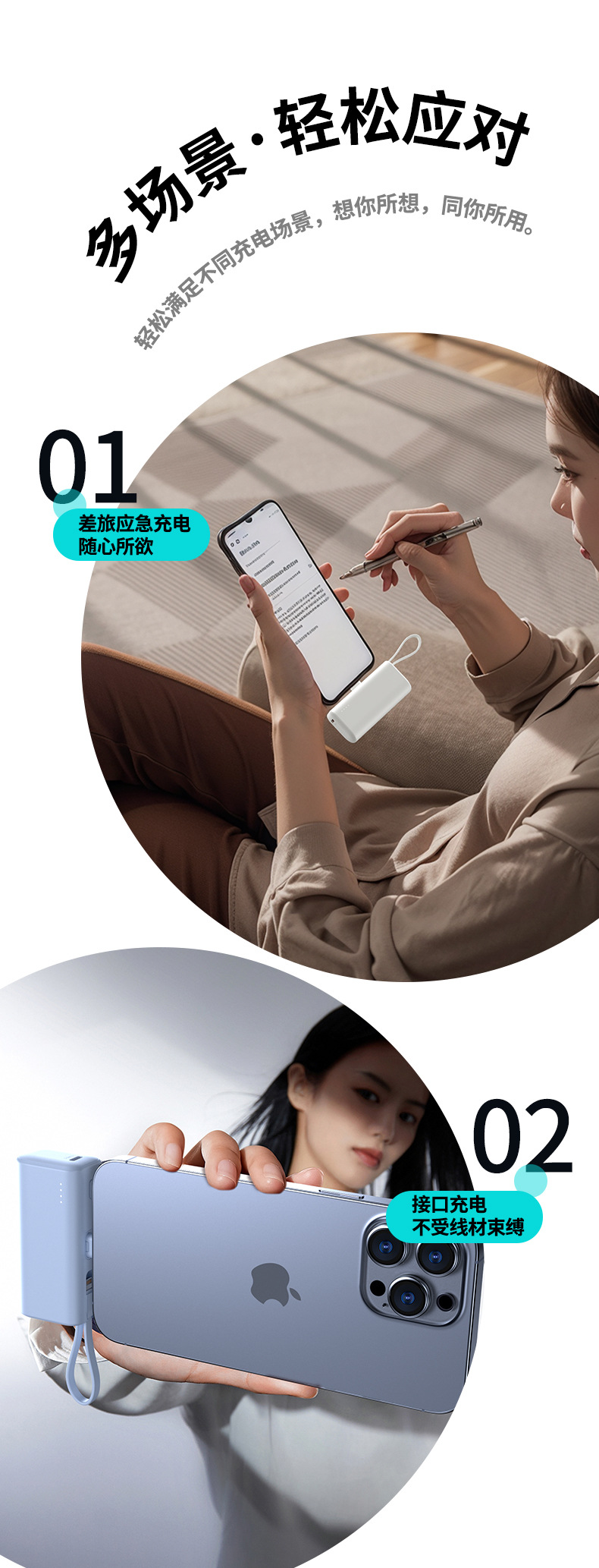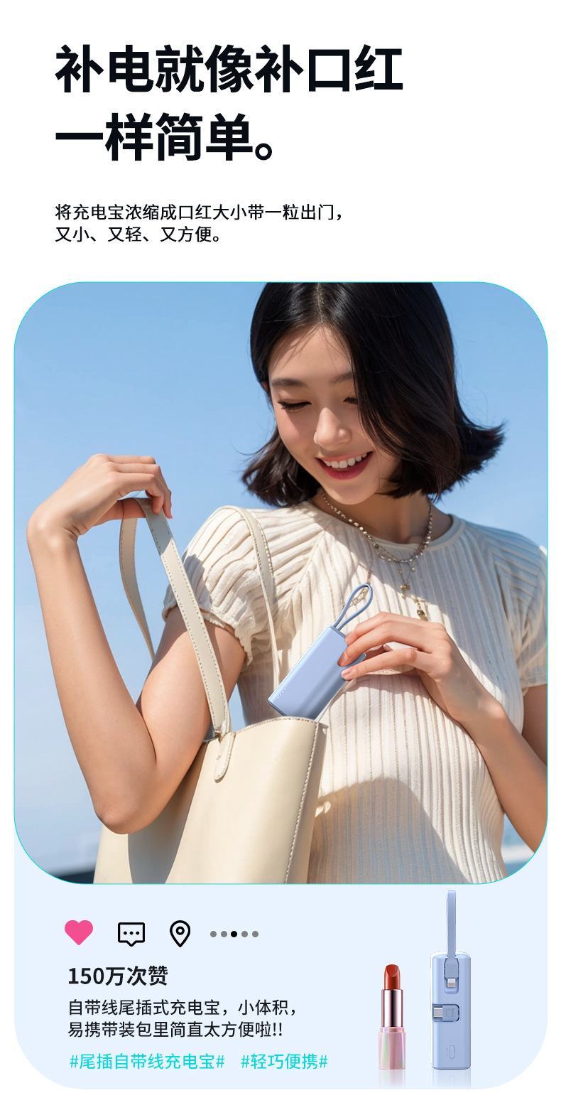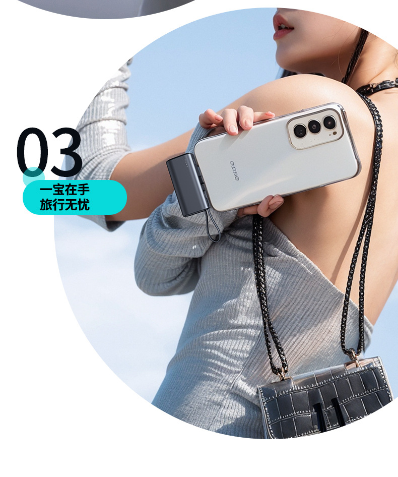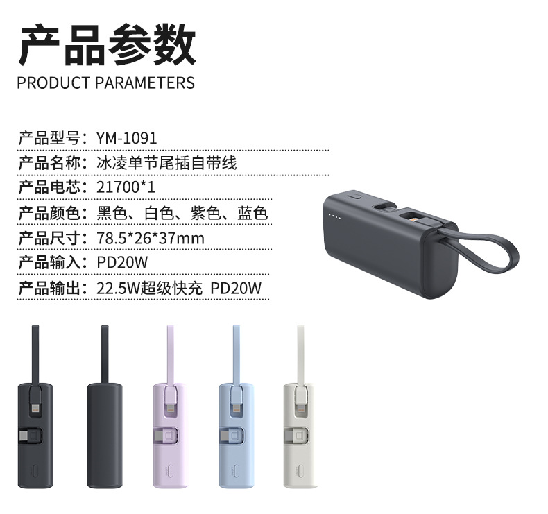 KC跨境胶囊充电宝快充自带线小巧快充便携移动电源双向快充定 制